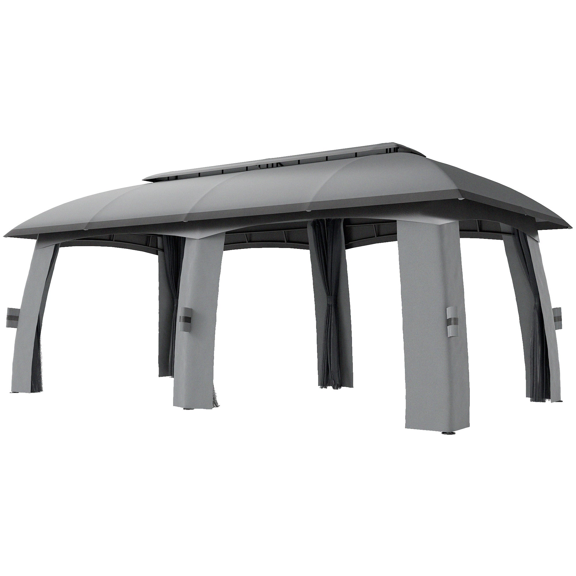 Outsunny Pavillon, 3 x 6 m Partyzelt mit Doppel-Dach, Gartenpavillon, Biergarten-Zelt mit Moskitonetzen, für bis zu 15 Personen, für Garten, verzinktes Metall, Dunkelgrau