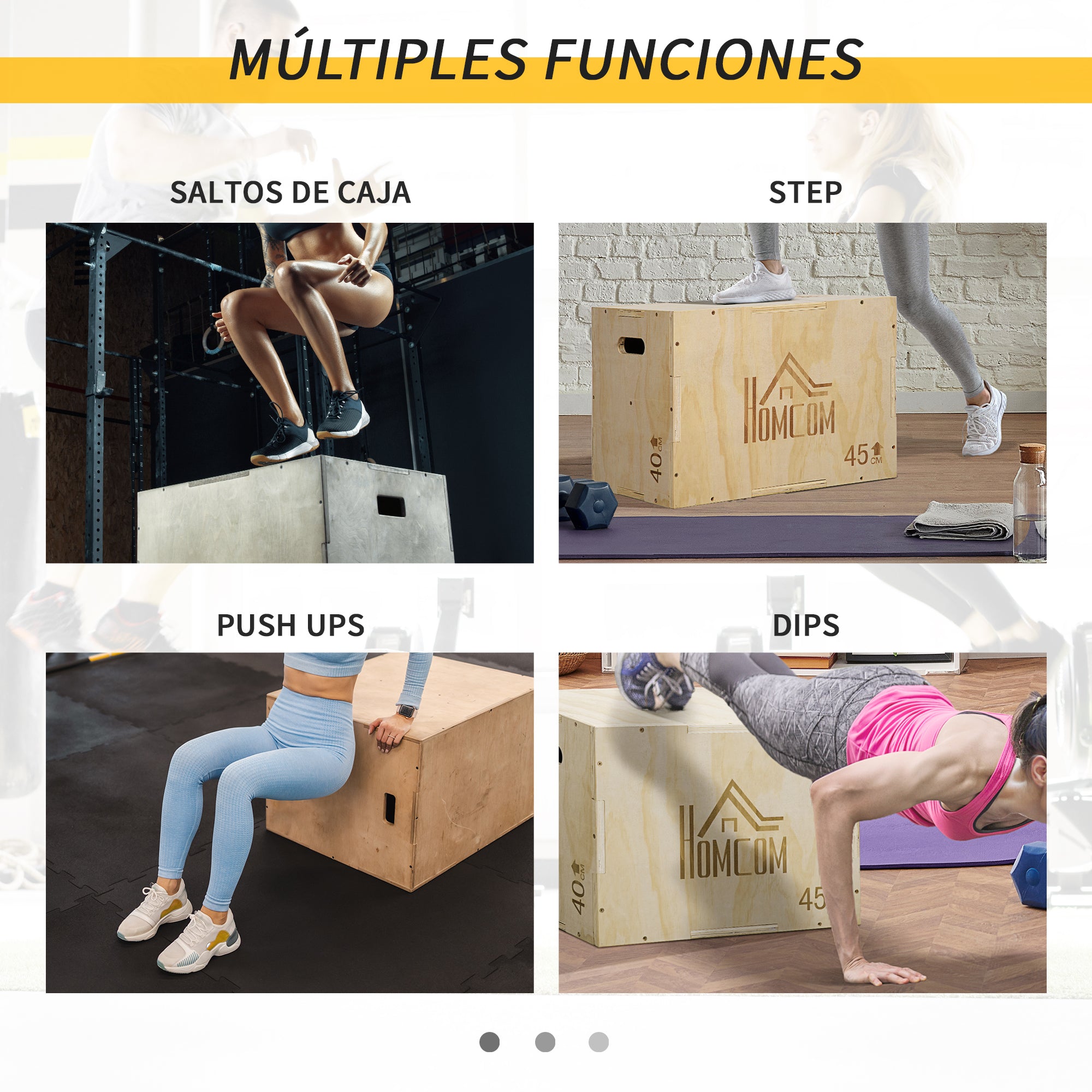 HOMCOM 3-in-1 Holz Plyometrische Box Sprungbox mit 2 Hohlgriffen für Krafttraining zu Hause, im Büro oder im Fitnessstudio | CrossFit Belastung bis 120 kg | 45x40x60 cm | Naturholz