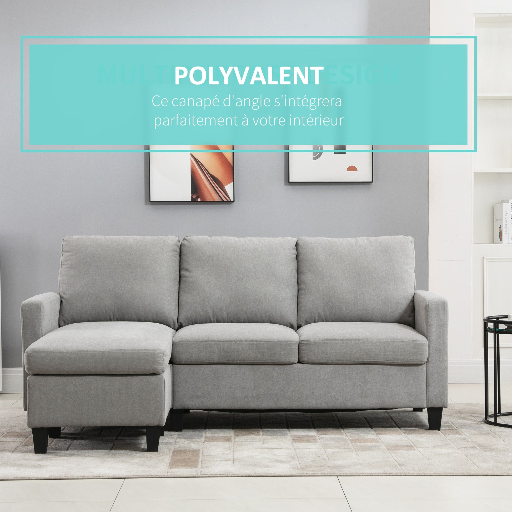 HOMCOM 3-Sitzer Ecksofa mit Wendecoupé für das Wohnzimmer, Büro oder die Wohnung, Polyestergewebe 197L x 139B x 91H cm Hellgrau