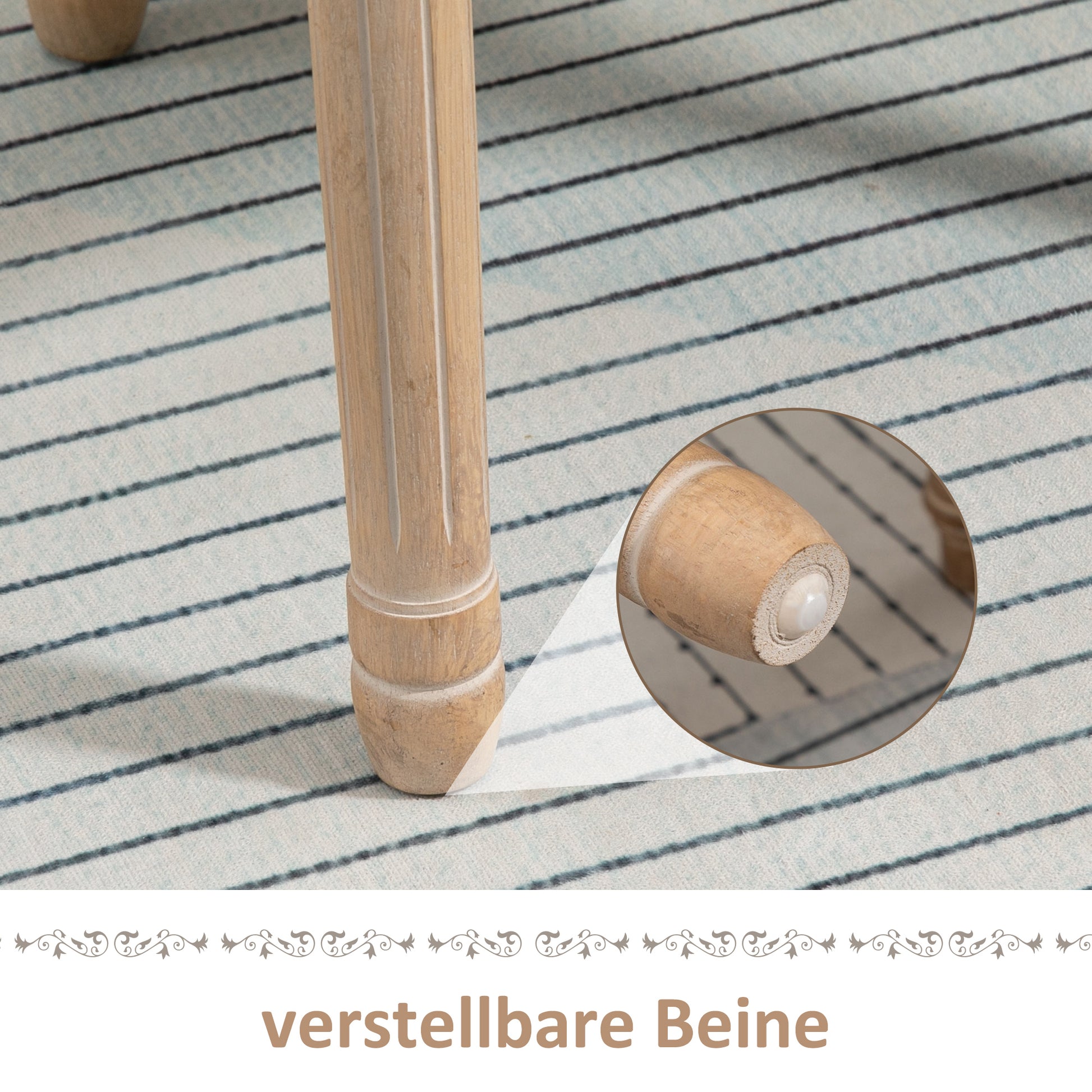 - - Robuste Konstruktion: Die soliden Holzbeine bieten hohe Stabilität und eine Tragfähigkeit von bis zu 120 kg. Zudem schützen die verstellbaren, rutschfesten Kunststofffüße Ihren Boden vor Kratzern und gewährleisten einen sicheren Stand auf verschiedenen Oberflächen.