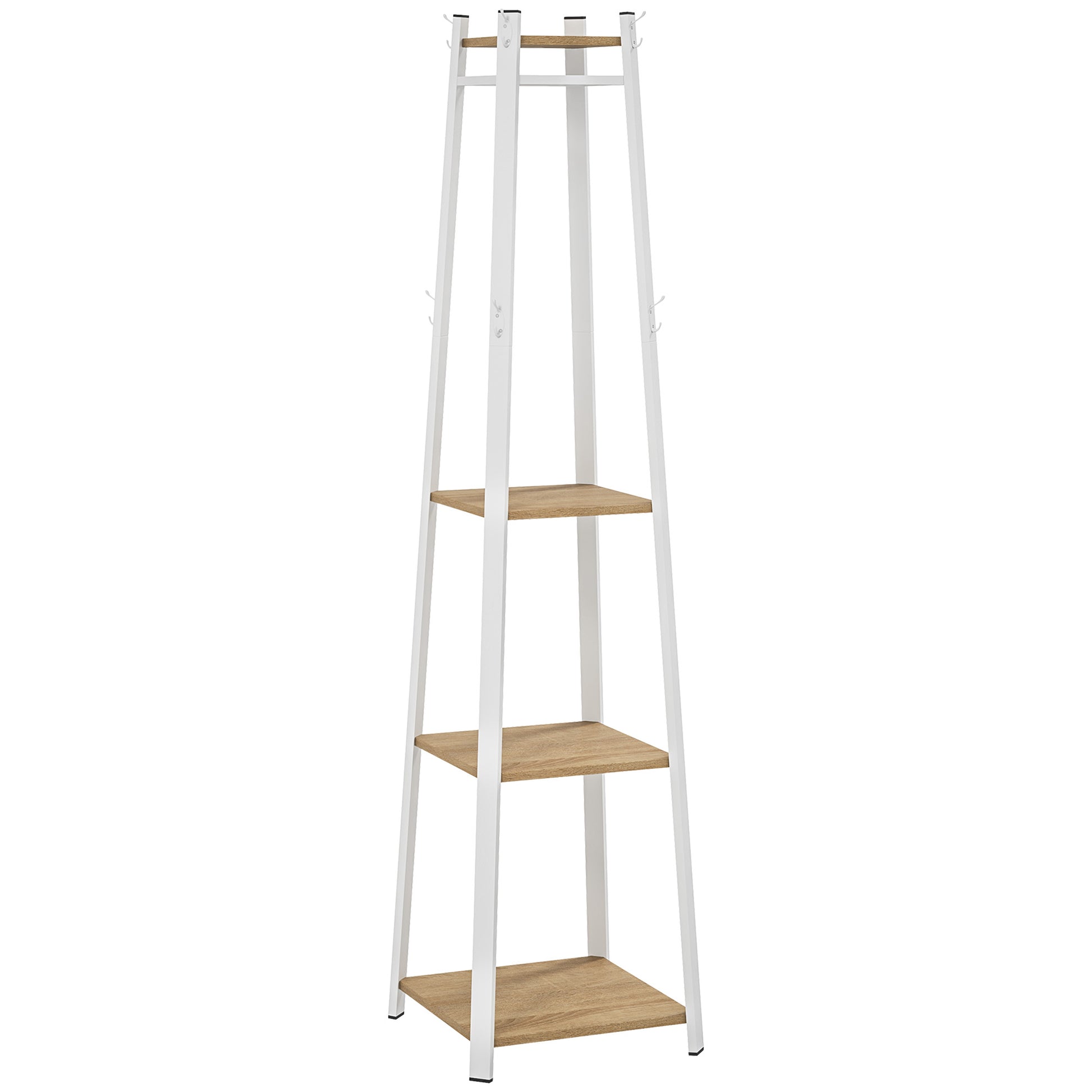 HOMCOM Garderobenständer, Kleiderständer mit 8 Haken, 4 Ebenen, Stahljackenständer für Kleidung, Hüte, Eingangsbereich, Flur, 34 x 34 x 170 cm, Weiß