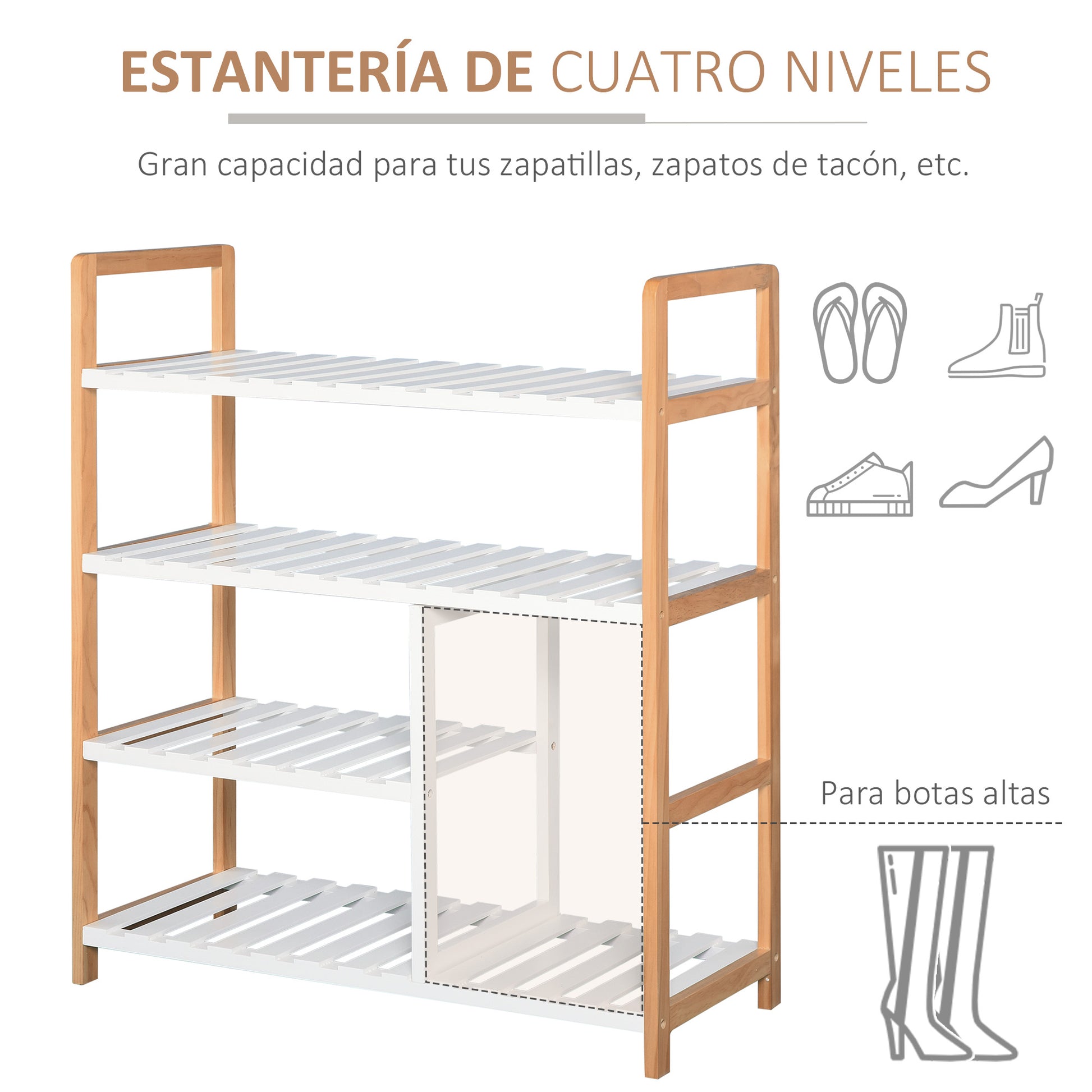 HOMCOM Schuhregal mit 4 Ebenen für bis zu 11 Paar Schuhe und Fach für hohe Stiefel aus massivem Kiefernholz 68x26x78 cm Weiß