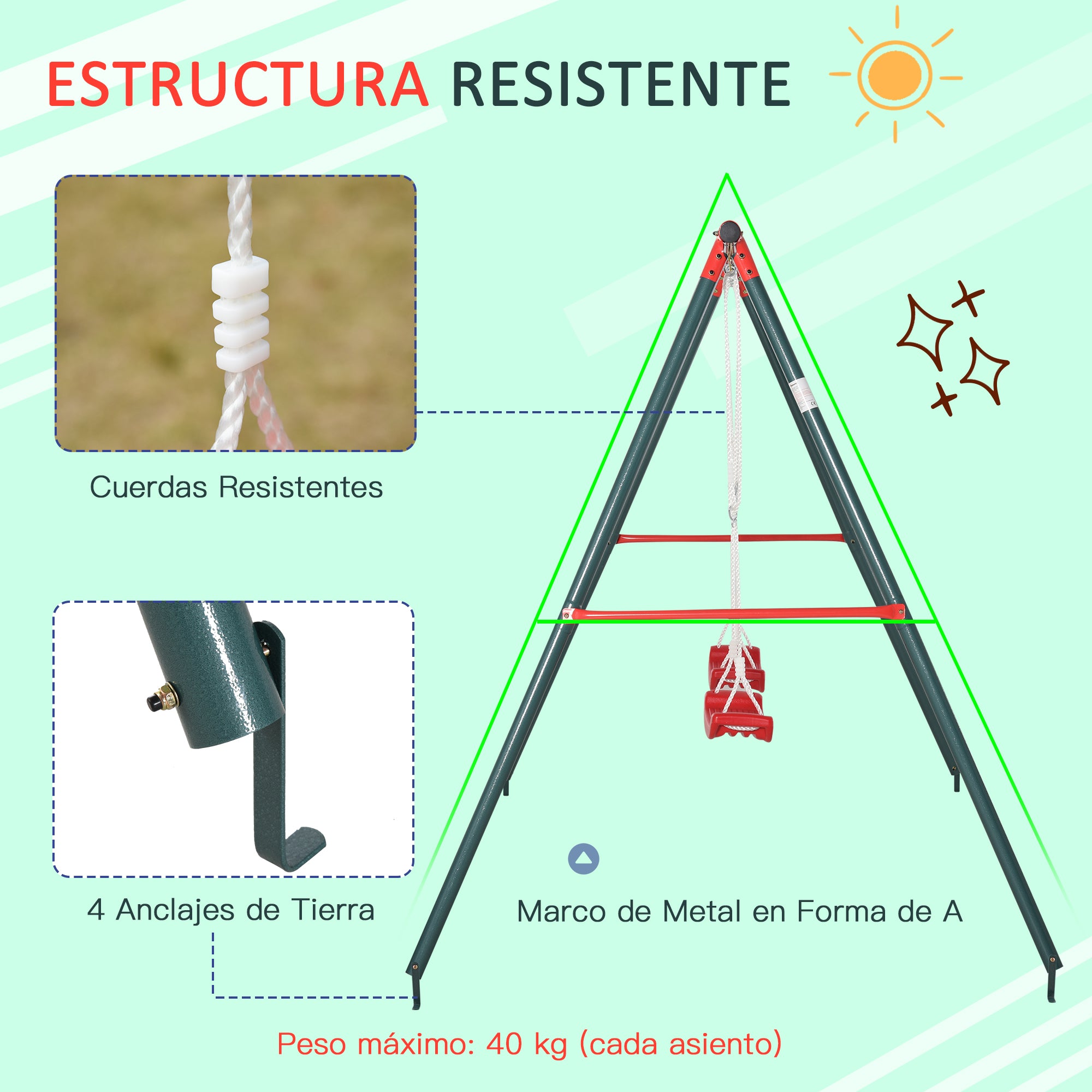 Outsunny Doppelschaukel für Kinder ab 3 Jahren mit Metallständer – Kinder-Schaukelspielplatz, verstellbare Seile, maximaler Belastung von 40 kg, 239x156x180 cm, Grün Rot