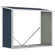 Outsunny Feuerholzlager aus verzinktem Stahl mit schrägem Dach für Garten und Terrasse 185x84x133,5/148,5 cm Grau