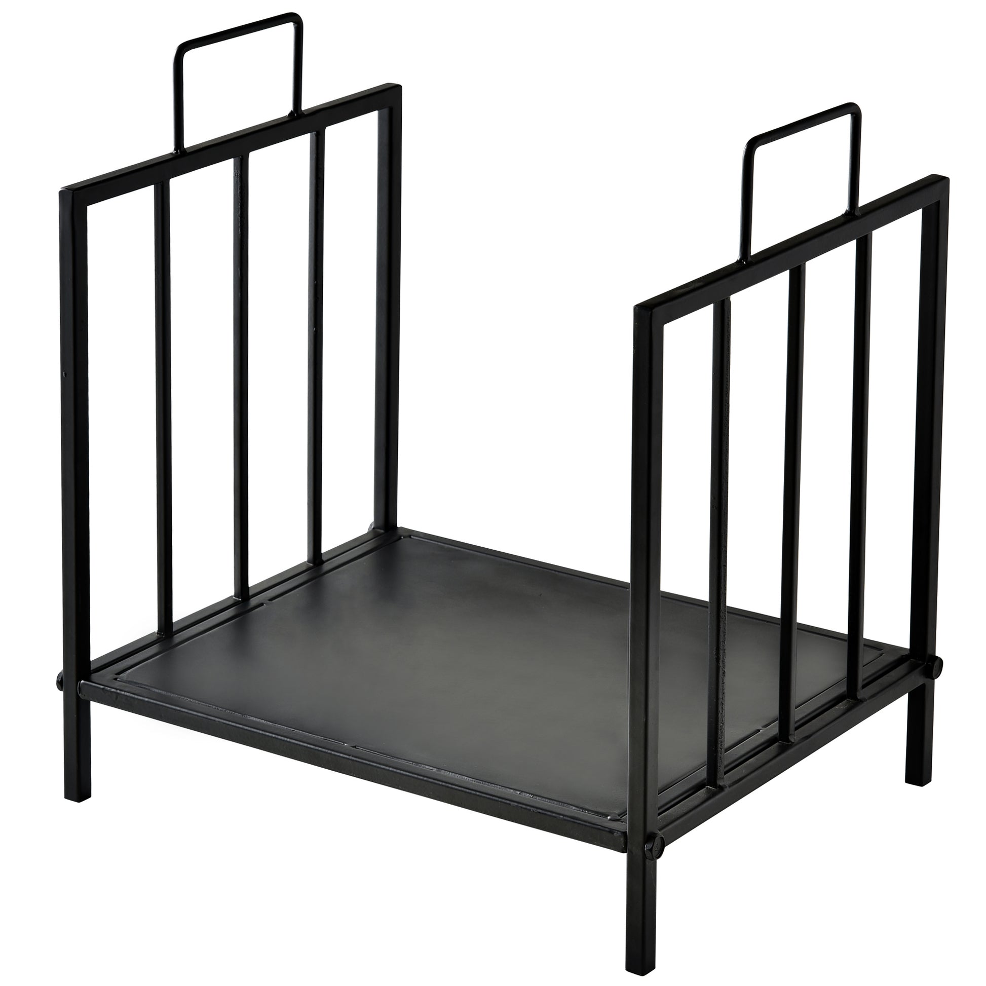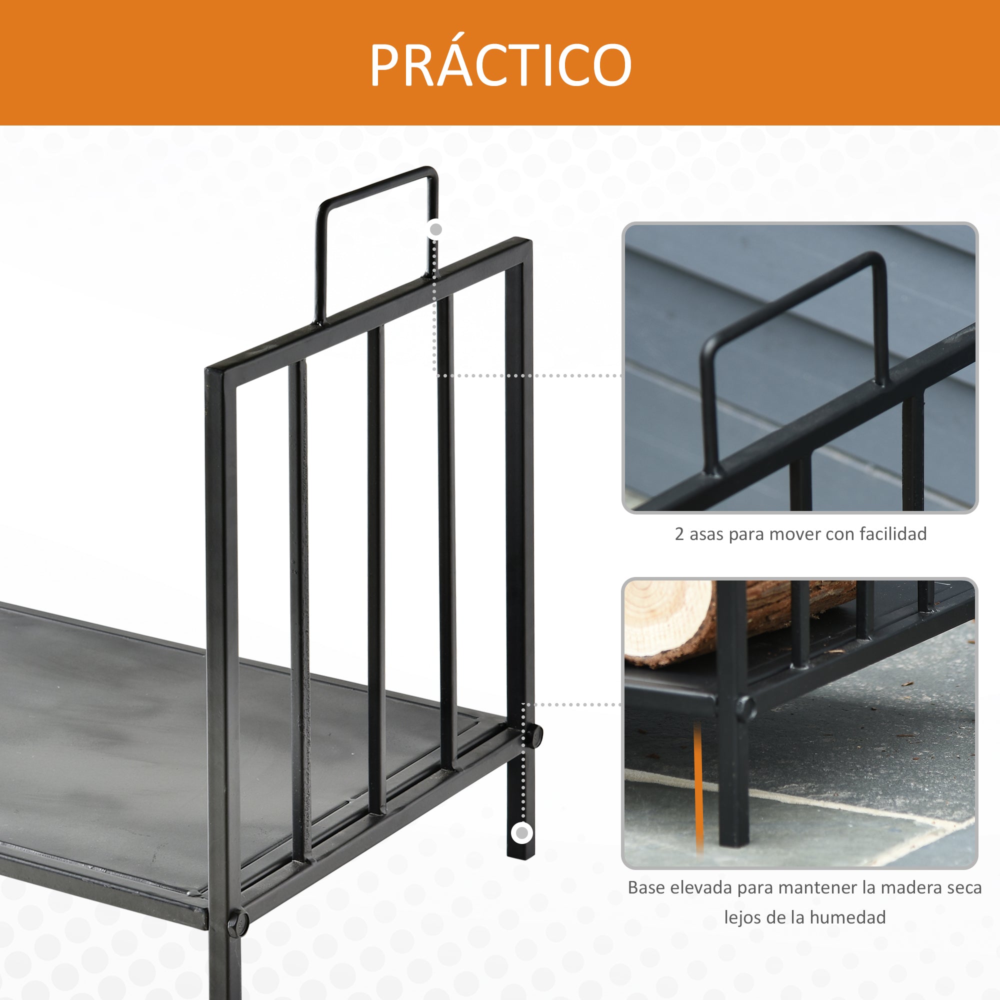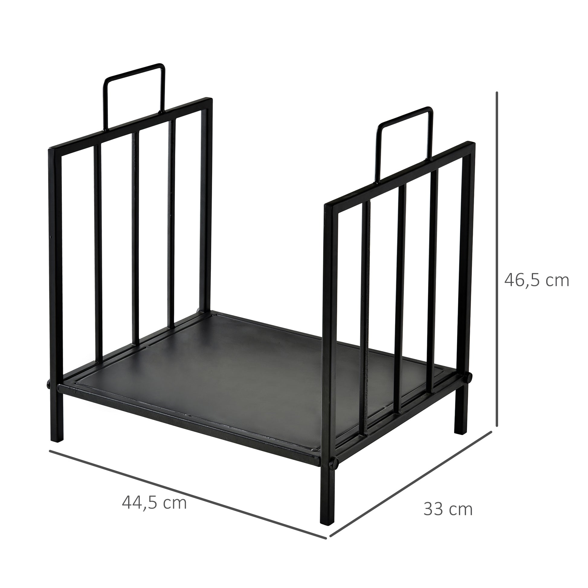 Outsunny Kamin Holzregal 44,5x33x46,5 cm Traditioneller Innen- und Außen Holzlager Holzständer mit Griffen Erhöhtes Design Schwarz