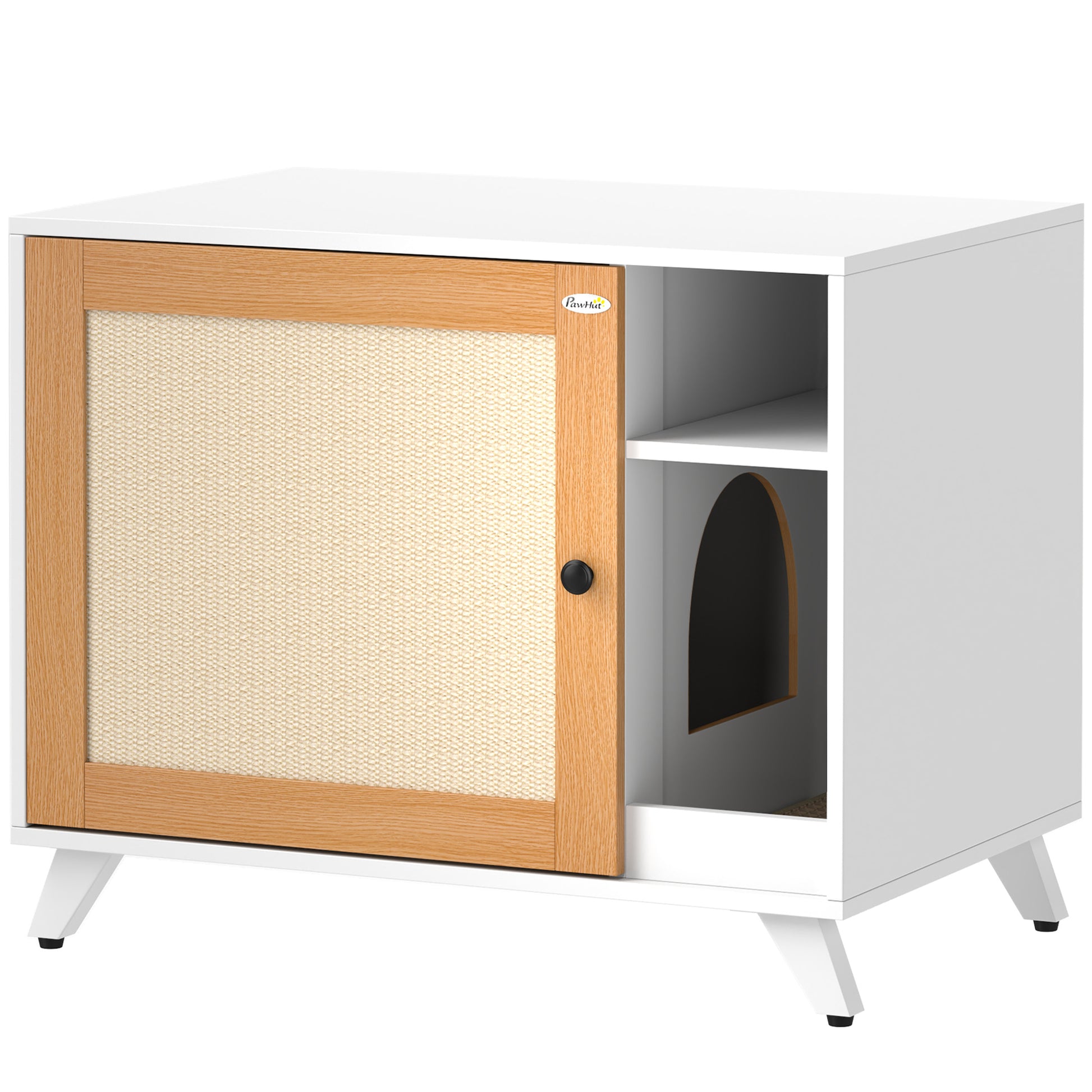 PawHut Katzentoilettenmöbel Katzentoilettenschrank mit Tür, Kratzbrett und Katzentoilettenfach für Wohnzimmer und Schlafzimmer 77x50x63 cm Weiß