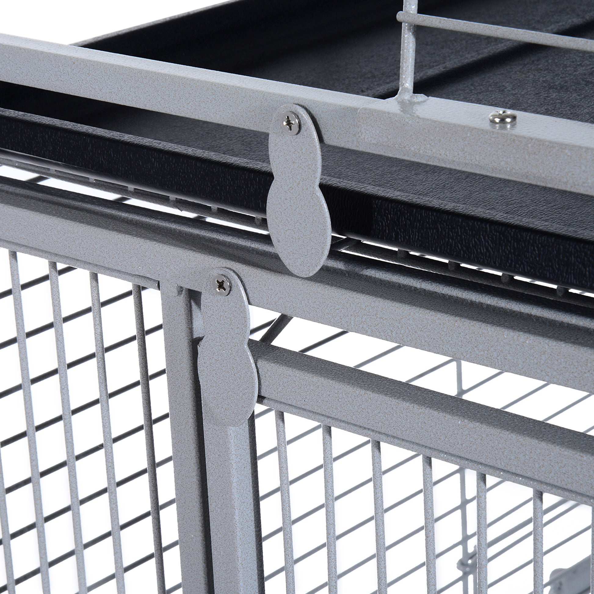 PawHut Vogelvoliere mit Rollen Höhe 161,5 cm, Stahltrays und Holzstangen, Silber
