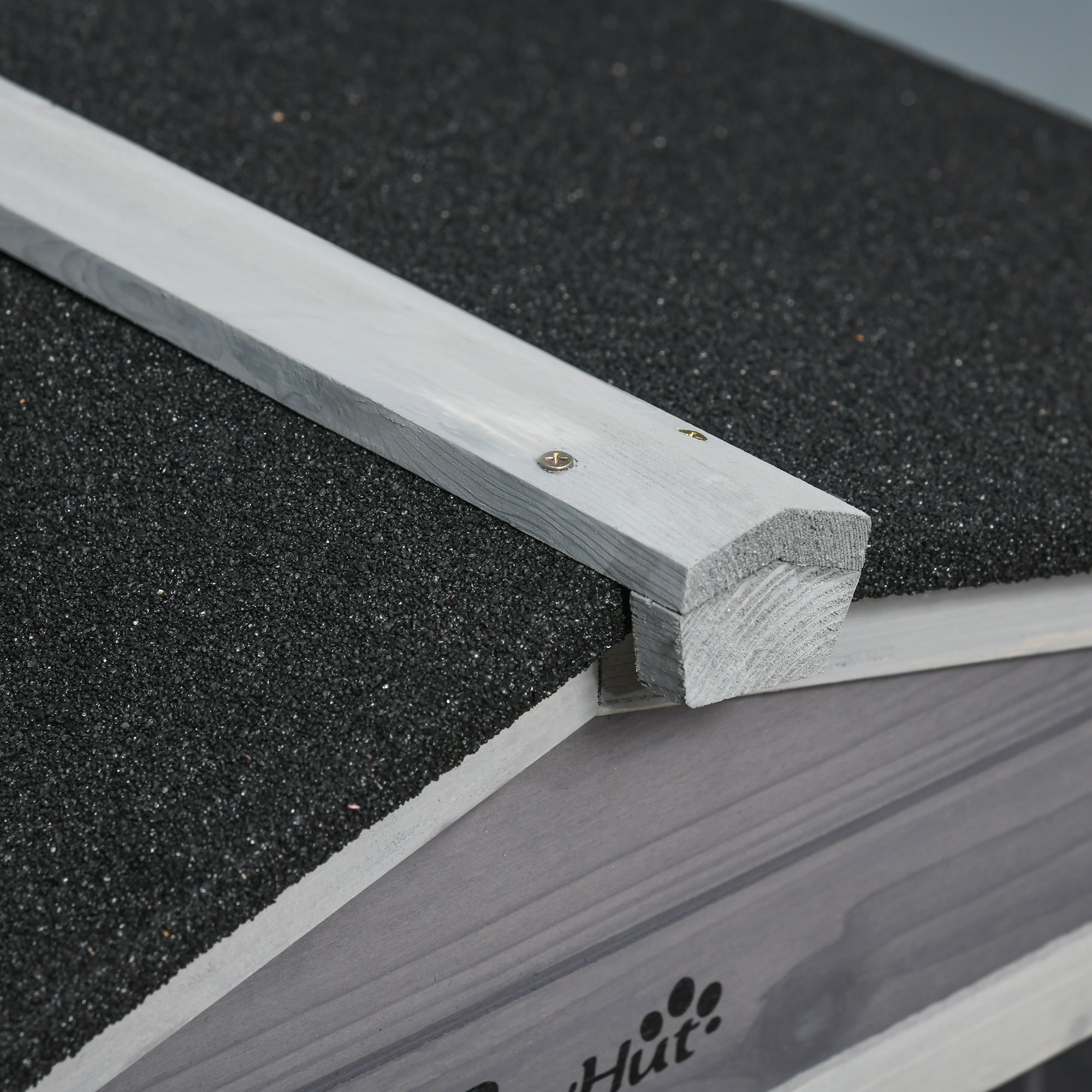 PawHut Kleintierstall mit Rädern Dwarf Rabbit Stall Außenauslauf Asphaltdach Kleintierhaus Dwarf Rabbit Auslauf zweigeschossig Fichtenholz Stahl Grau 157,4 x 53 x 99,5 cm