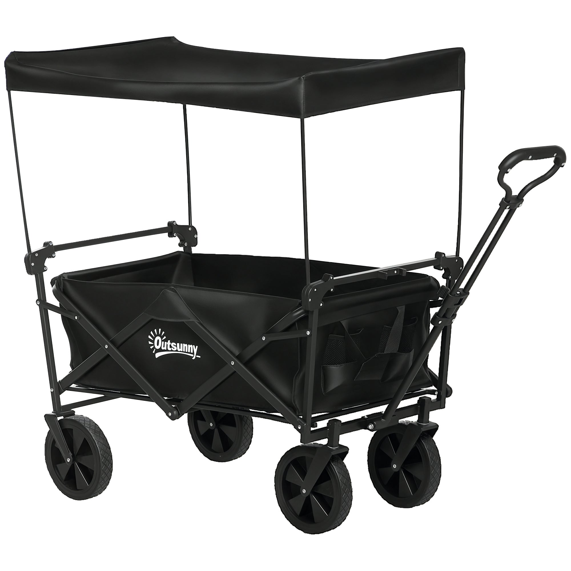 Outsunny Faltwagen mit Sonnenmarkise, Griff, Tragetasche, bis zu 100 kg Tragfähigkeit, Oxford, Schwarz
