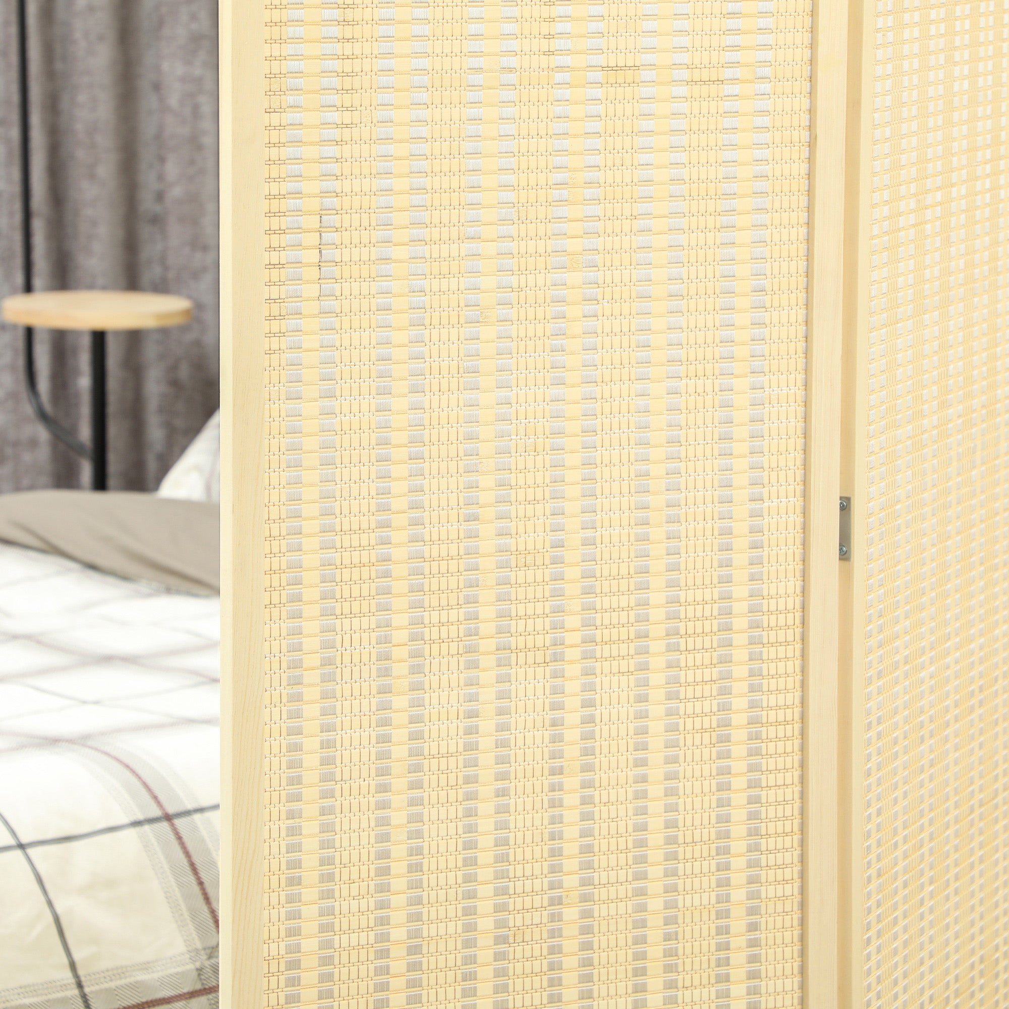HOMCOM Raumteiler Innenbereich 4 Faltbare Paneele 180L x 180H cm Pappelholz Woven Papierfasern Schokoladenstroh