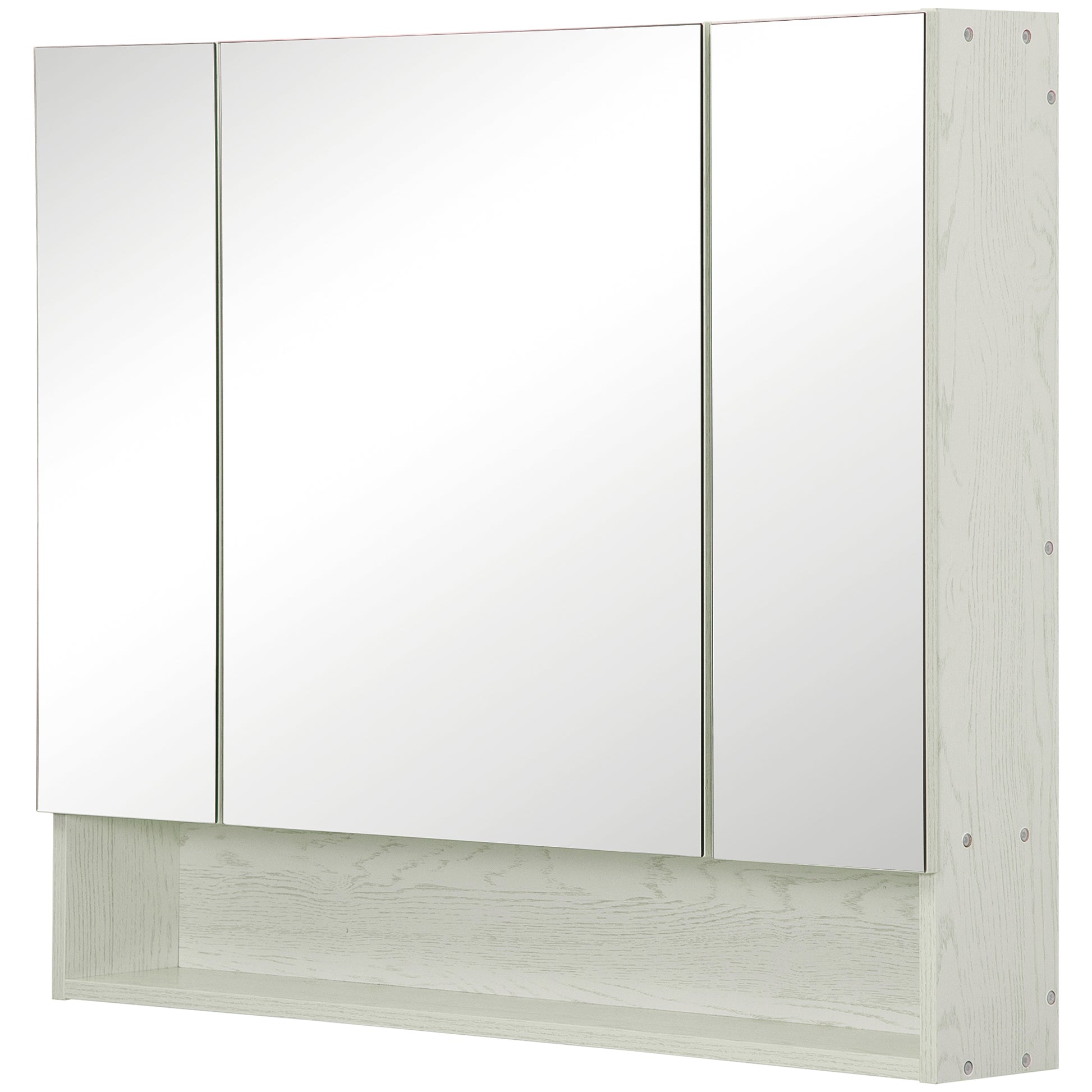 Kleankin Badezimmer-Schrank mit Spiegel - Wandmontierter Schrank mit 3 Türen, verstellbarem Regal und Fächern - Hängendes Badezimmermöbel für Wohnzimmer 90x15x75 cm Weiß