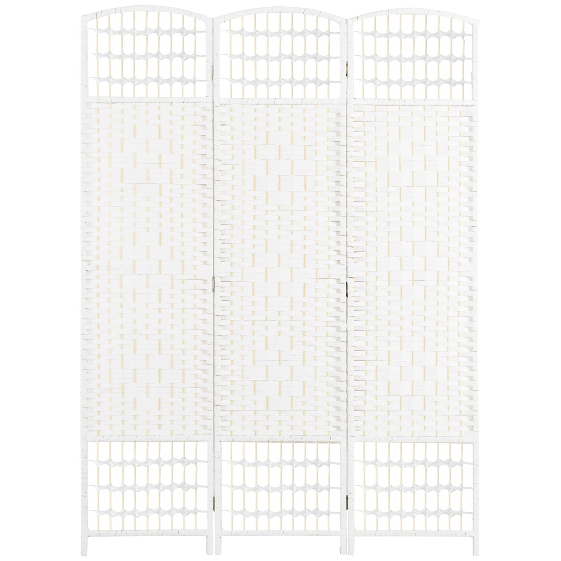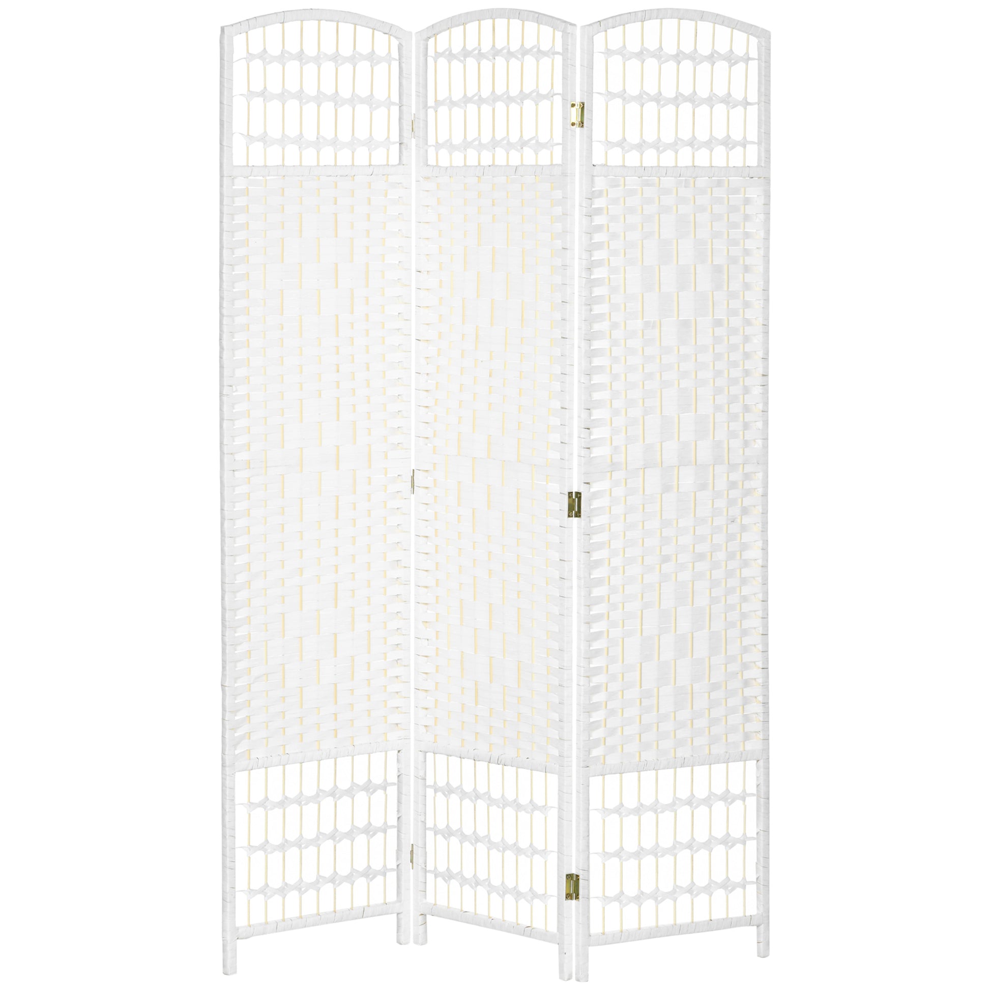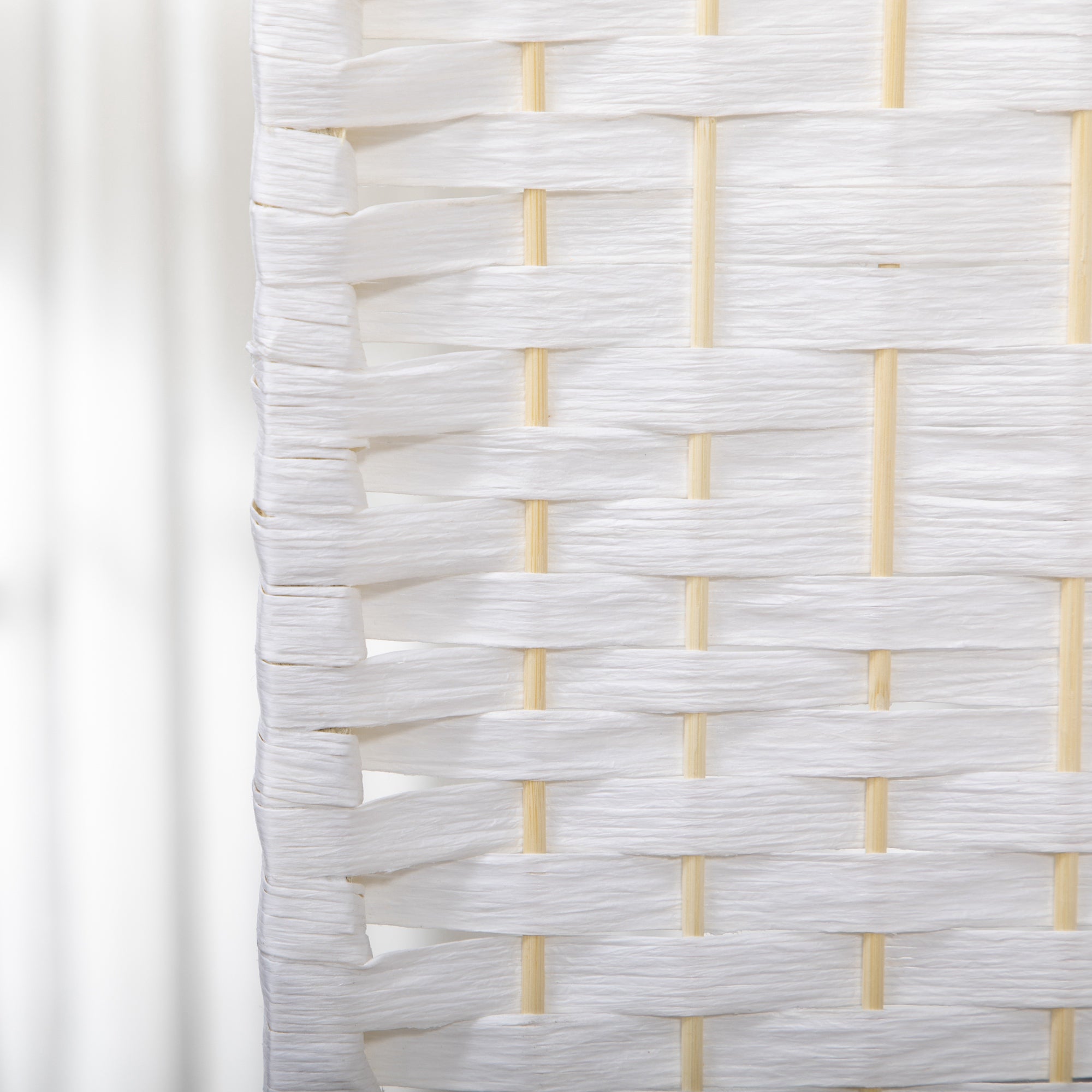 HOMCOM 3-Panel Raumteiler 120x170 cm Faltbarer Paravent mit Papierseil und Holzrahmen Deko für Schlafzimmer Wohnzimmer Weiß