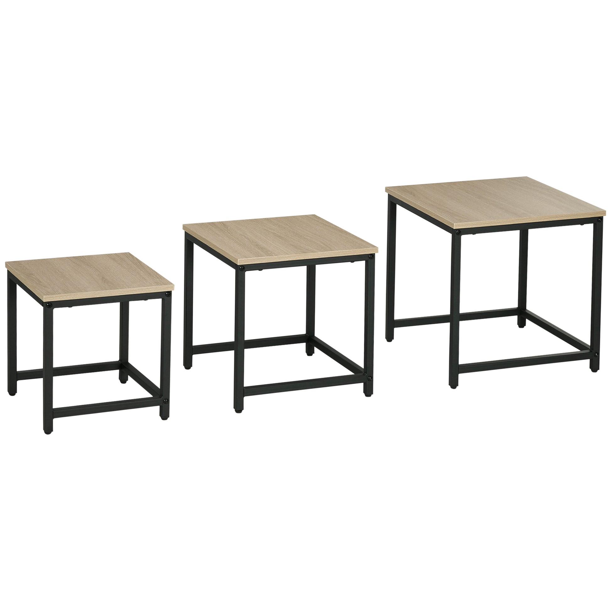 HOMCOM 3-teiliger Couchtisch Set, Beistelltisch, Nesting-Tisch mit Stahlrahmen, Industrie-Design, Couchtisch, Tisch für das Wohnzimmer mit Holzmaserung, Natur