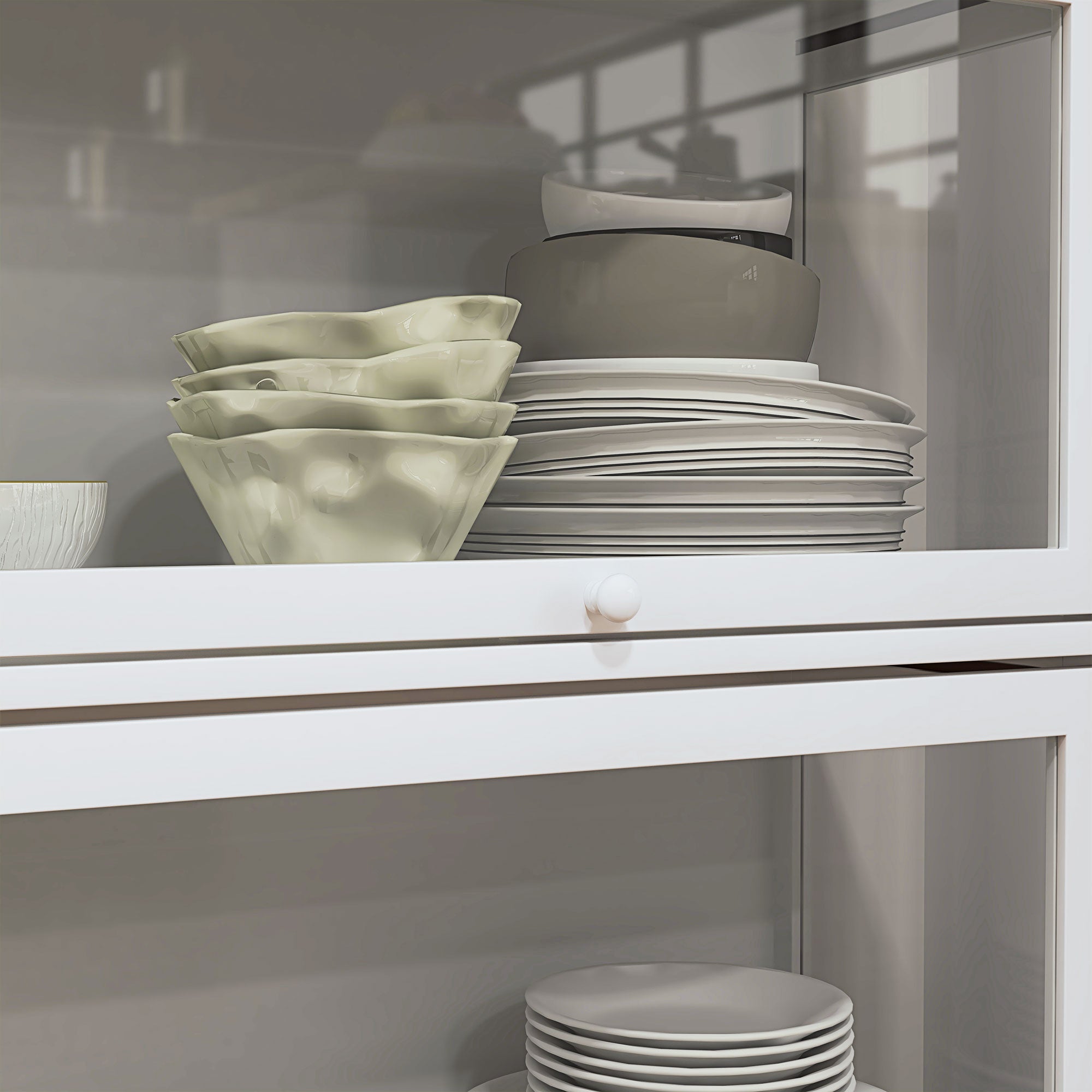 - - SCHIEBE- UND FALTTÜREN: Diese Ausstellungsvitrine verfügt über Schiebetüren, die oben verborgen sind, sodass der Stauraum maximiert wird, ohne zusätzlichen Platz einzunehmen