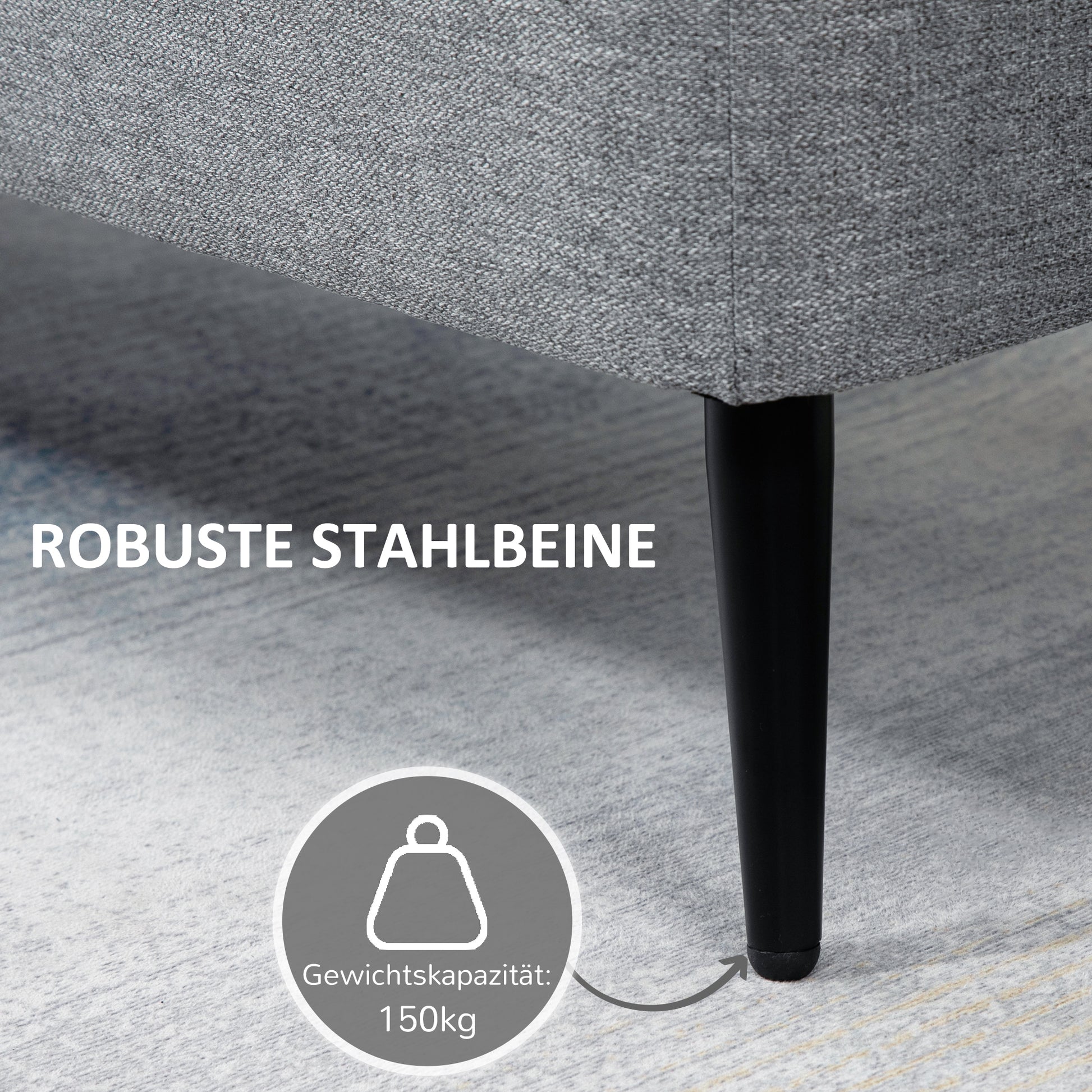 - - Robuste Struktur: Ausgestattet mit stabilen Stahlbeinen und leicht zu reinigendem Polyesterstoff im Leinenlook. Die Füße der Bettenbank haben zudem rutschfeste Pads, um den Boden vor Kratzern zu schützen.