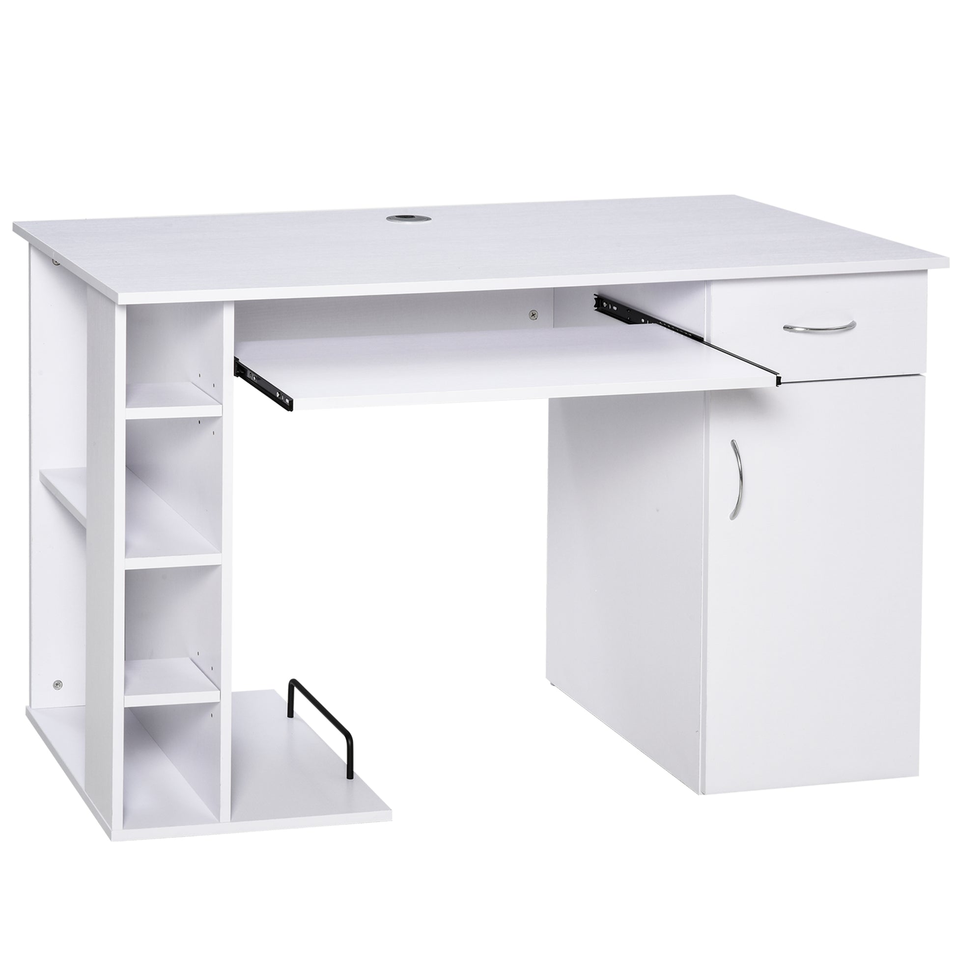 HOMCOM Computer Desk Multimedia Schreibtisch mit mehreren Aufbewahrungseinheiten, Schublade, Tastaturablage MDF 120 x 60 x 74 cm Weiß
