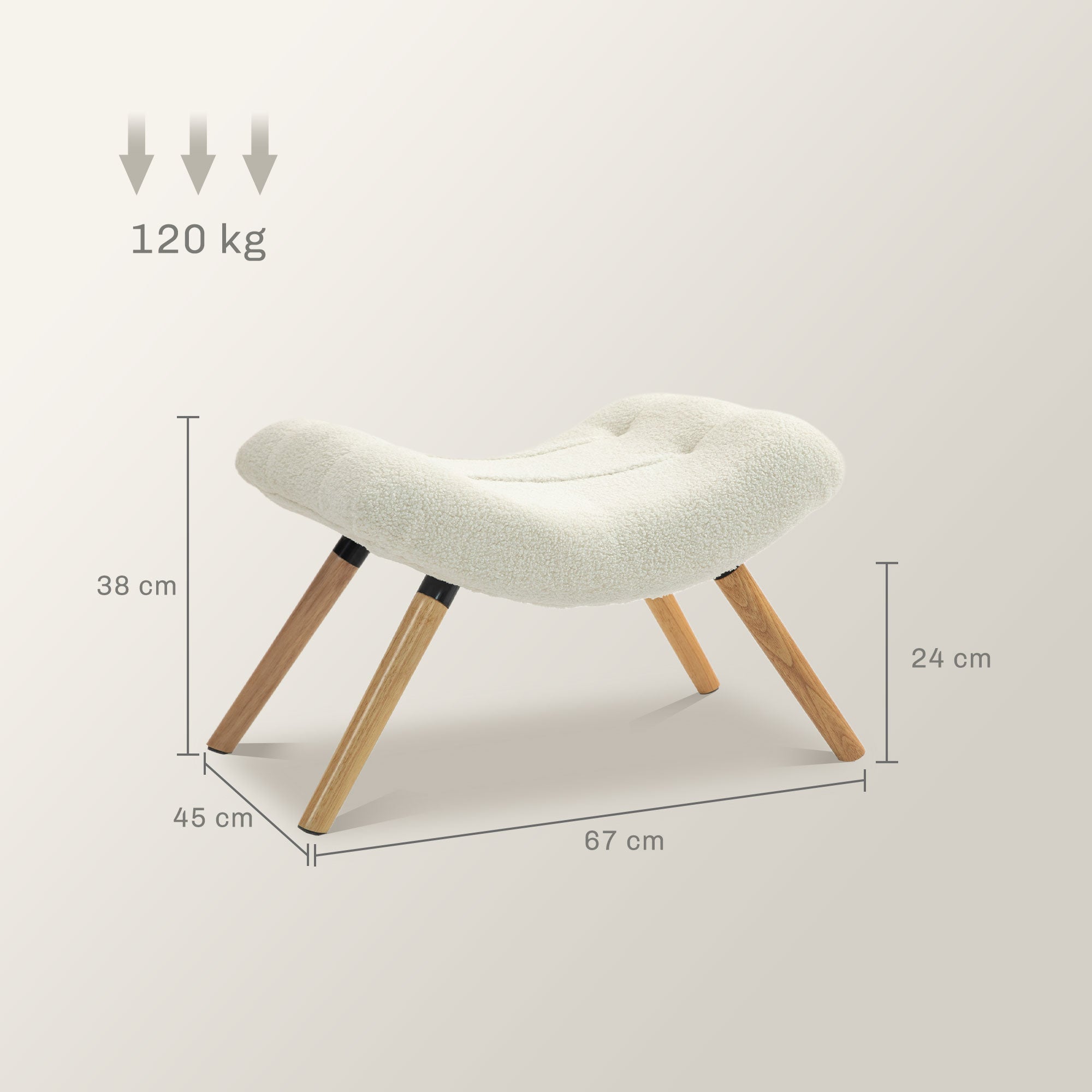 - - Abmessungen des Fußhockers: 67L x 45B x 38H cm, Tragfähigkeit: 120 kg, Montage erforderlich