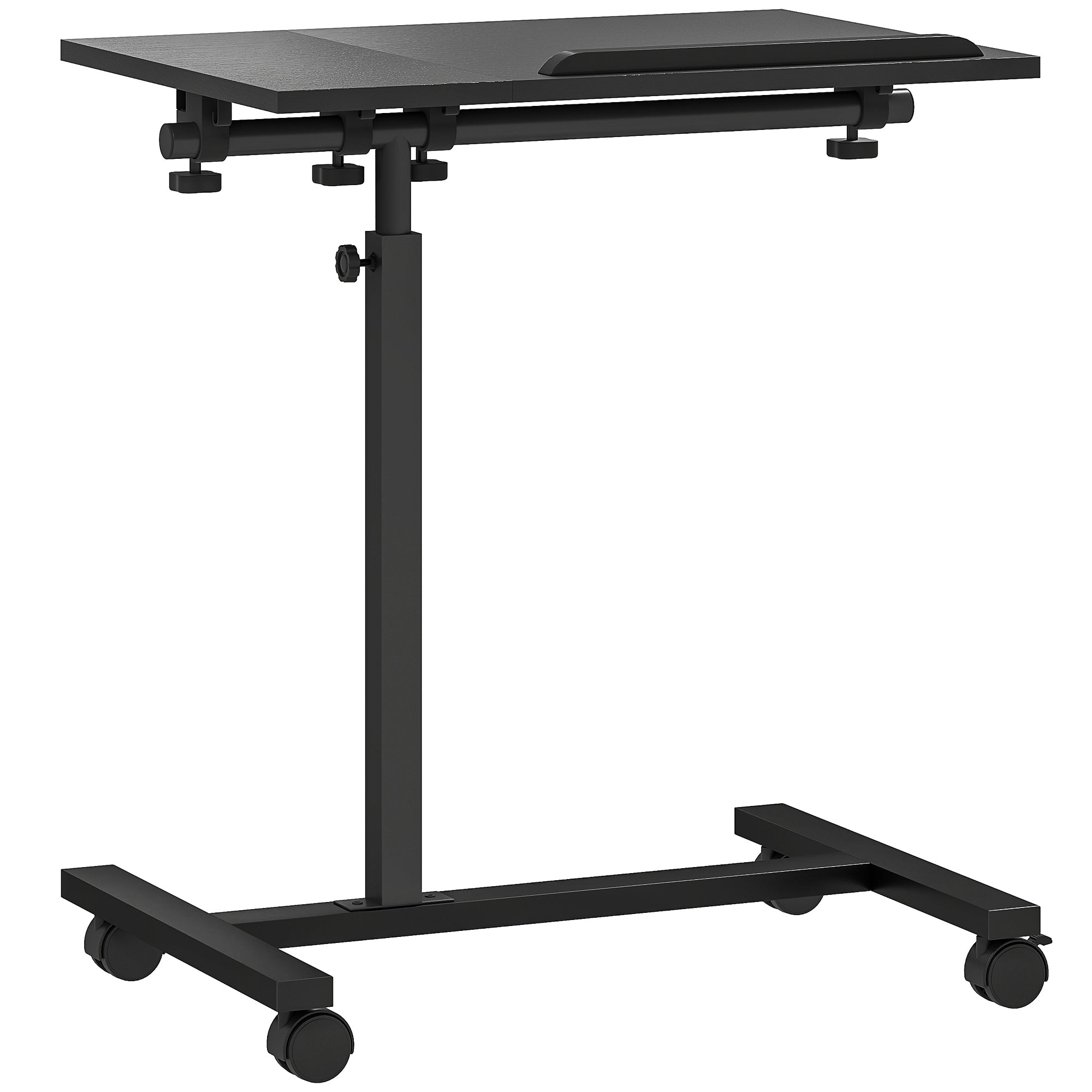 HOMCOM Höhenverstellbarer C-förmiger Computertisch mit abschließbaren Rollen und neigbarem Tischoberteil für Schlafzimmer und Wohnzimmer, Schwarz