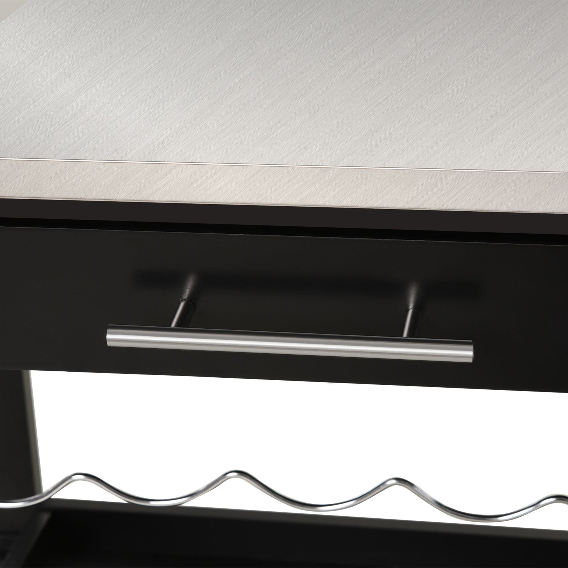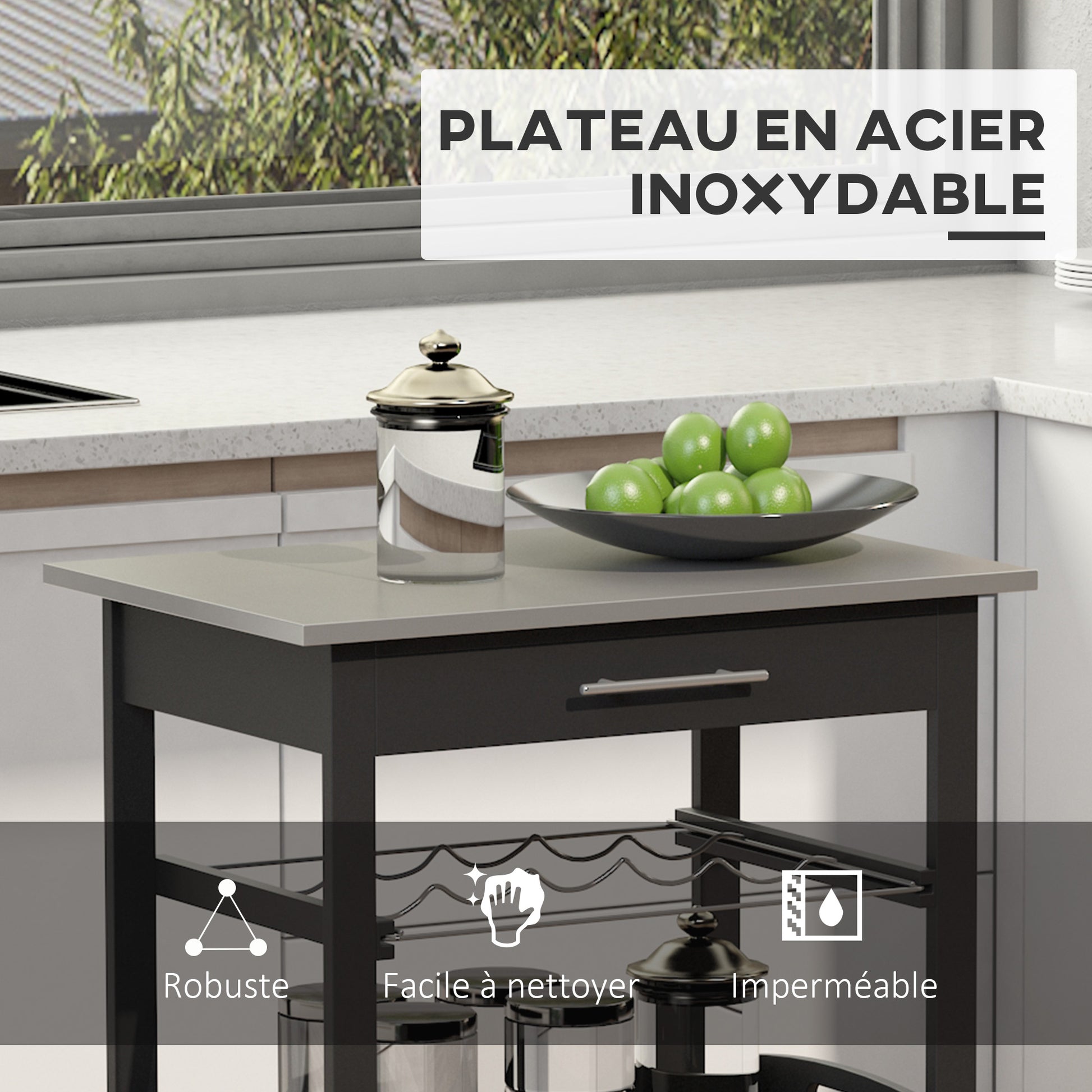HOMCOM Küchenservierwagen mit Flaschenablage 60L x 40B x 85H cm Edelstahlplatte. Schwarz