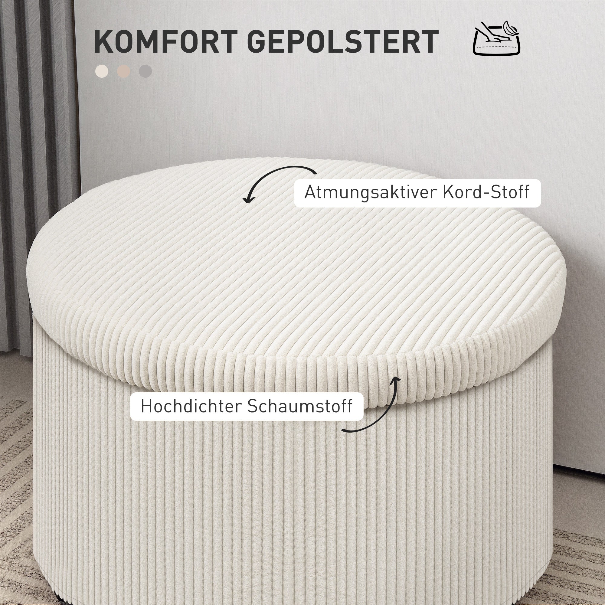 HOMCOM Ottoman mit Stauraum und Deckel, runder gepolsterter Hocker im Cord-Look für Wohnzimmer und Schlafzimmer 60 x 60 x 41 cm Beige