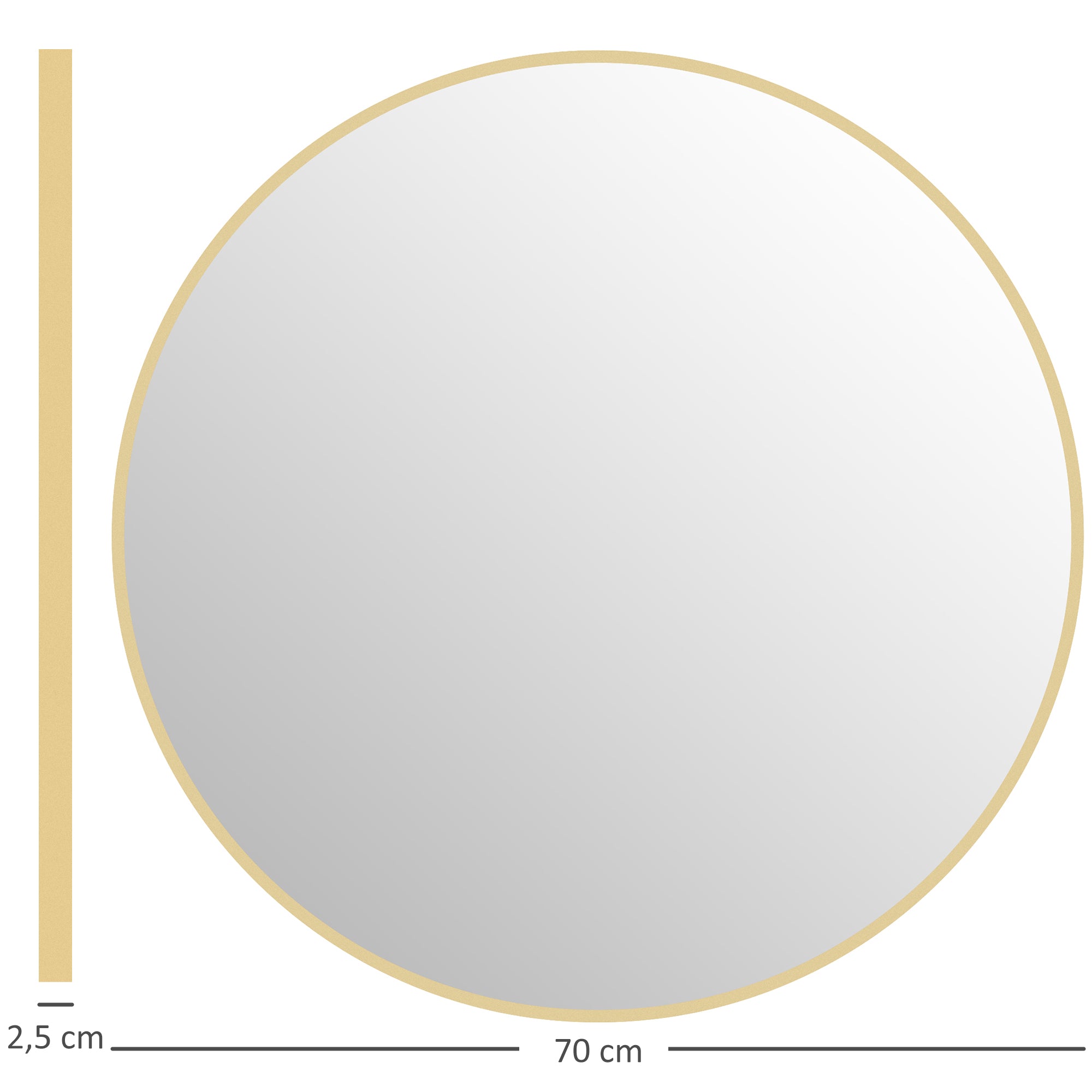 HOMCOM Rundspiegel, Badezimmerspiegel, Durchmesser 70 cm, Metallrahmen, Wandspiegel, Einfach zu Montieren, für Schlafzimmer, Wohnzimmer, Eingangsbereich, Gold