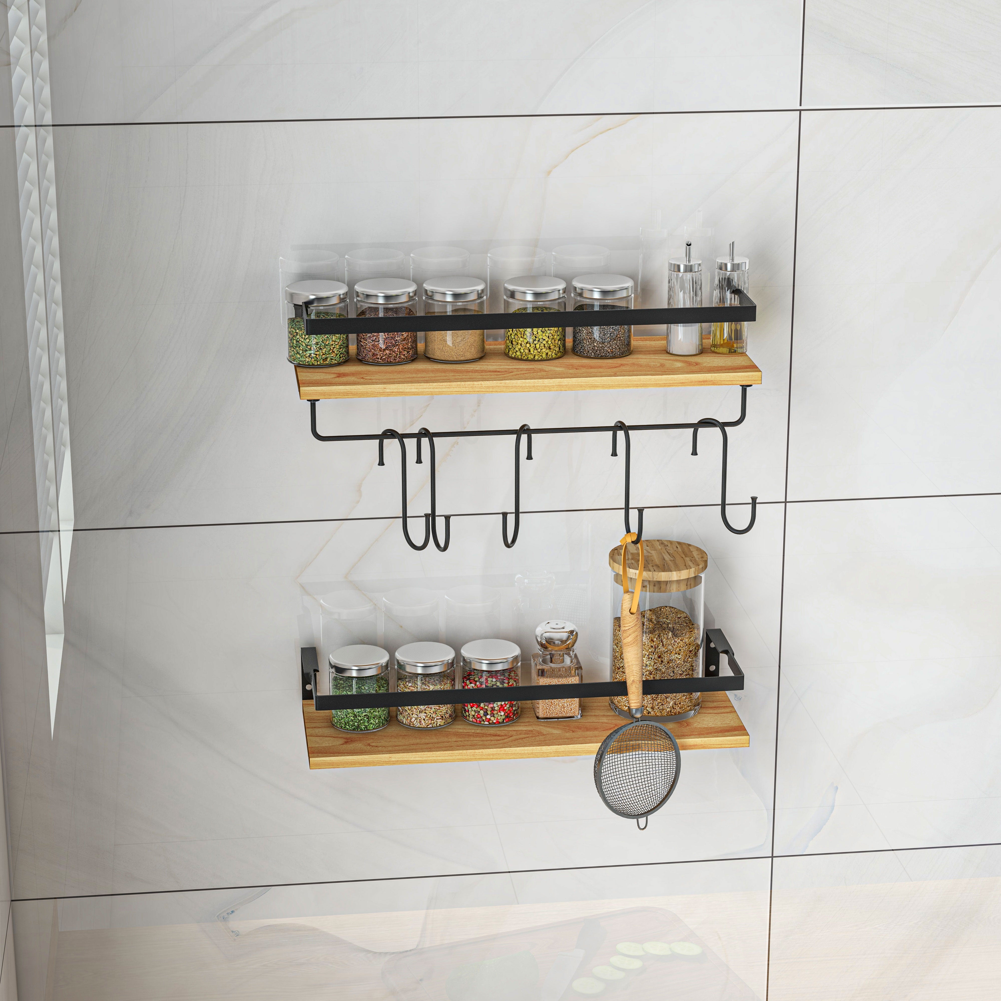 - - WANDSTAU-RAUM: Unsere Regale mit 6 Haken und einer hängenden Stange bieten ausreichend Stauraum. Sie können Pflanzen platzieren, um einen vertikalen Garten zu schaffen, dekorative Objekte auszustellen oder Ihre Gewürze und andere Zutaten zu lagern