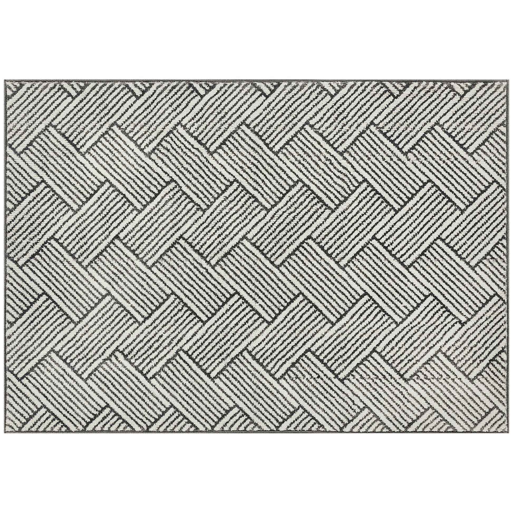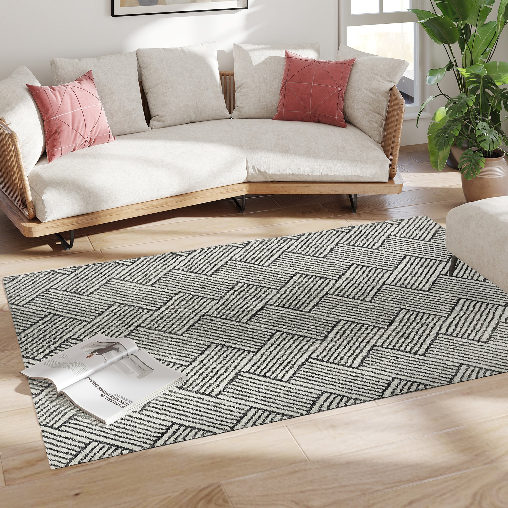- - MODERNES DESIGN: Dieser maschinengetuftete Wohnzimmerteppich verfügt über ein zeitgemäßes geometrisches Design mit ineinander verschlungenen Blöcken aus vertikalen und diagonalen Linien, die ein schickes und strukturiertes Korbmuster hervorrufen.