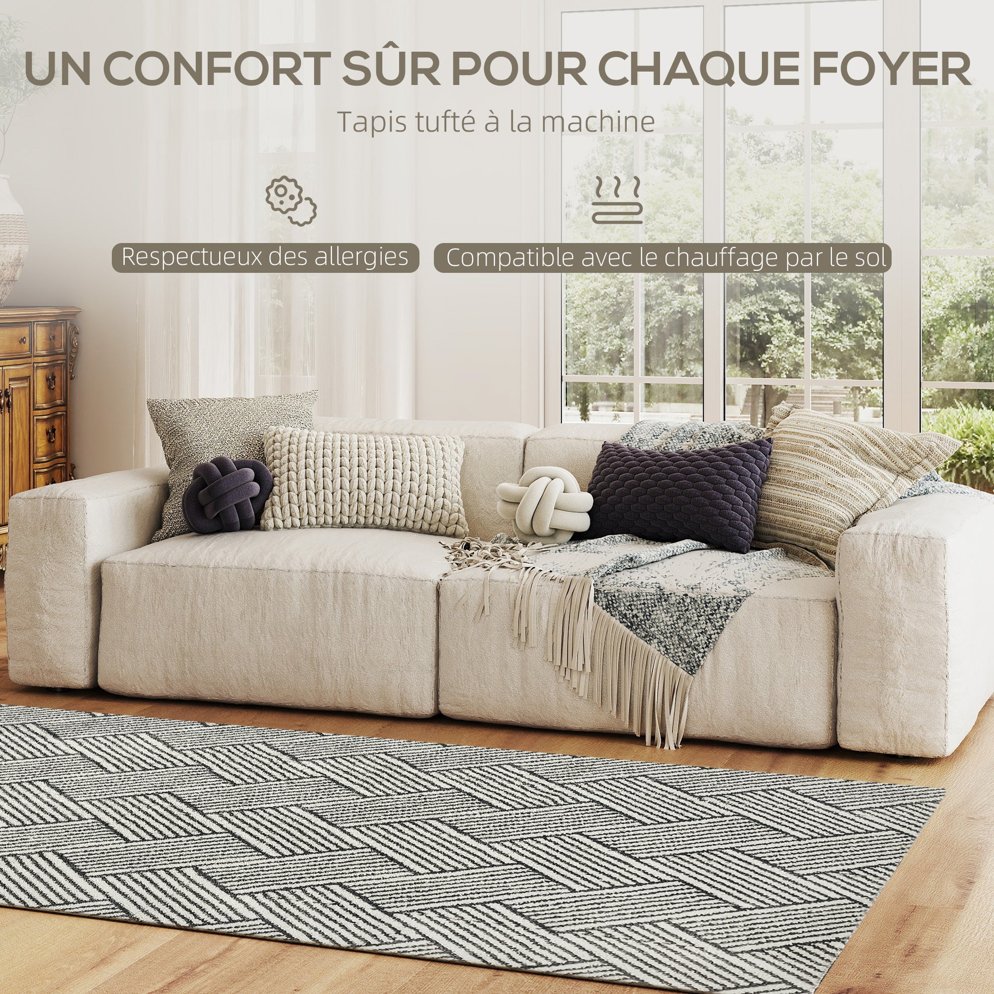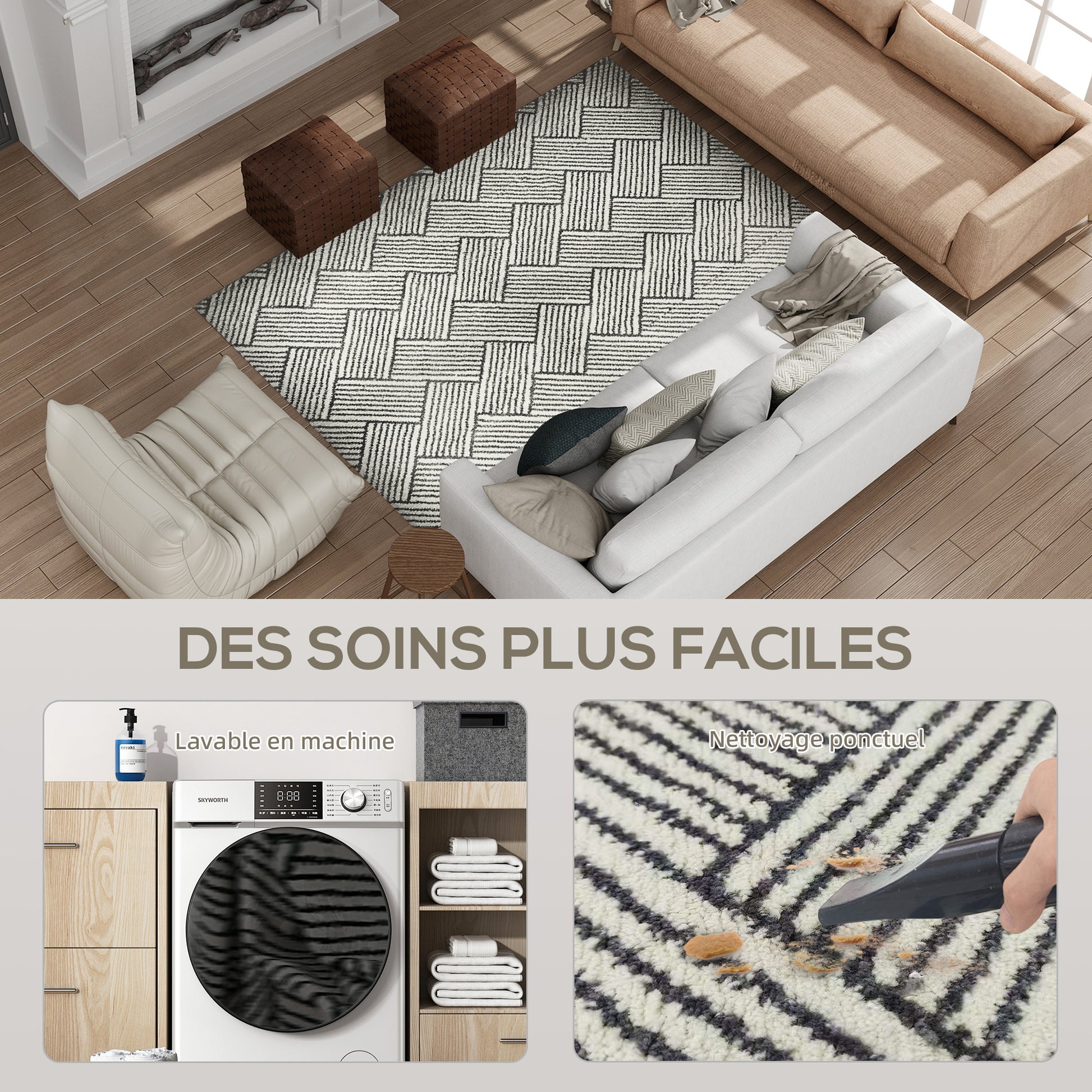 HOMCOM Wohnzimmerteppich 170 x 120 cm Kurzflor Teppich, waschmaschinenfest, hypoallergen, für Wohnzimmer, Schlafzimmer, Büro, Hellgrau
