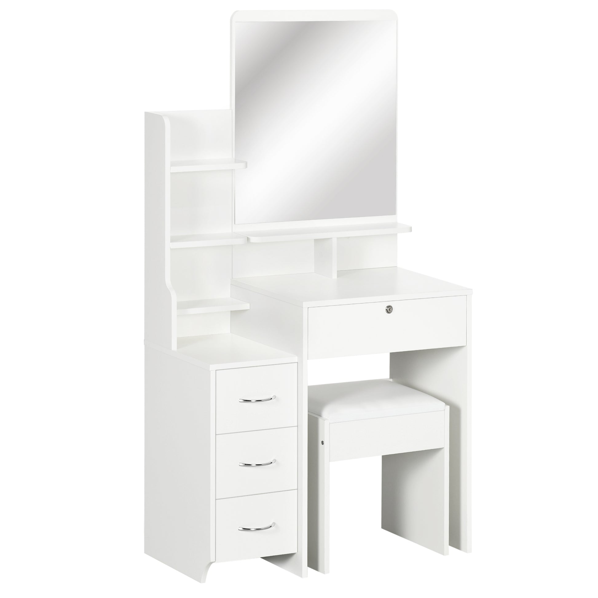 HOMCOM Schminktisch mit Hocker und Spiegel, Kosmetiktisch mit 4 Schubladen, 4 Stauraumfächern, Moderner Stil, 80x38x143 cm Weiß