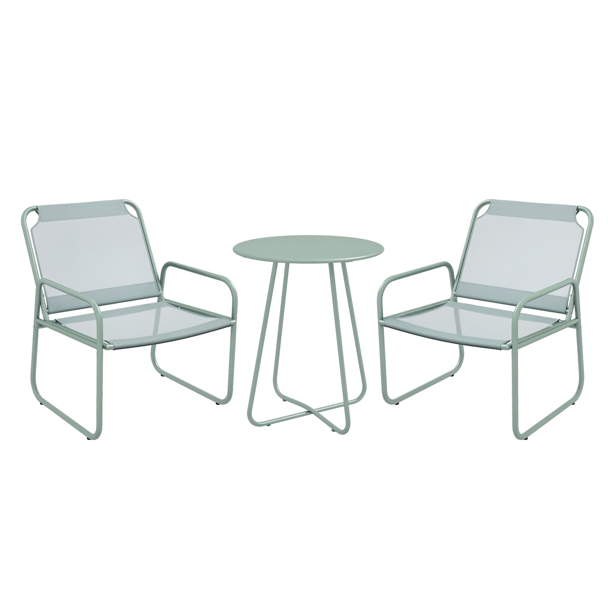 Outsunny 3-teiliges Bistro-Set, Balkonmöbel-Set mit 1 Tisch, 2 Stühlen, Gartenmöbel-Set, Patio-Sitzgruppe für Garten, Terrasse, Mesh, Grün