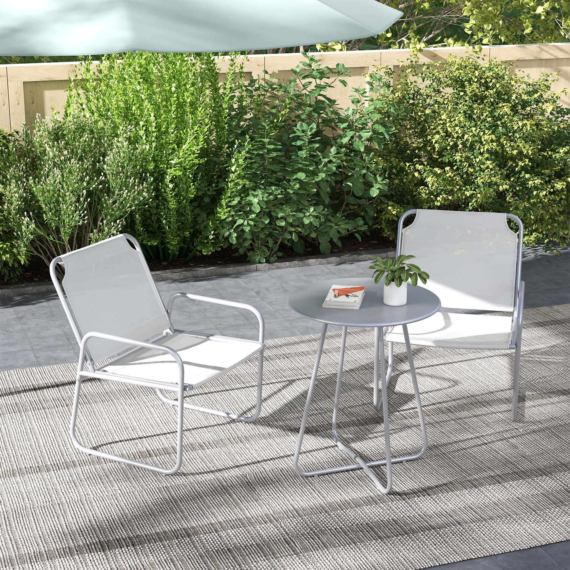 Outsunny 3-tlg. Bistro-Set – Balkonmöbel Set mit 1 Tisch, 2 Stühlen, Gartenmöbel Set, Gartensitzgruppe für Garten, Terrasse, Netz, Hellgrau
