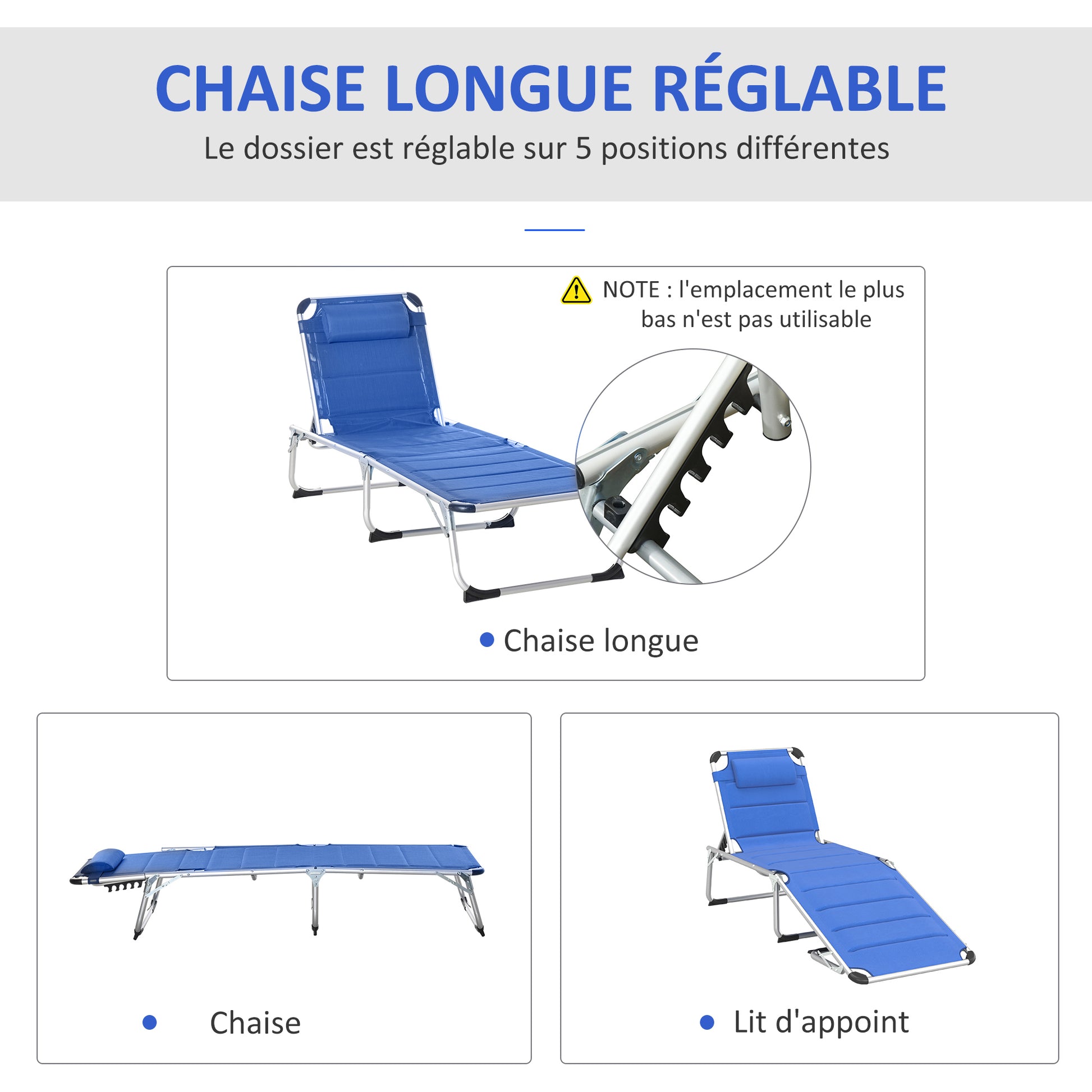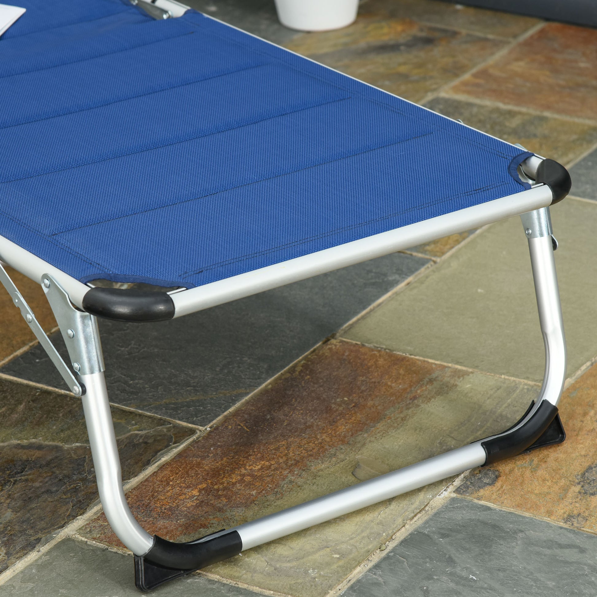 Outsunny Faltbare Sonnenliege mit Verstellbarem Rückenlehne, Polsterung, Abnehmbarem Kopfkissen Aluminium Textilene Blau