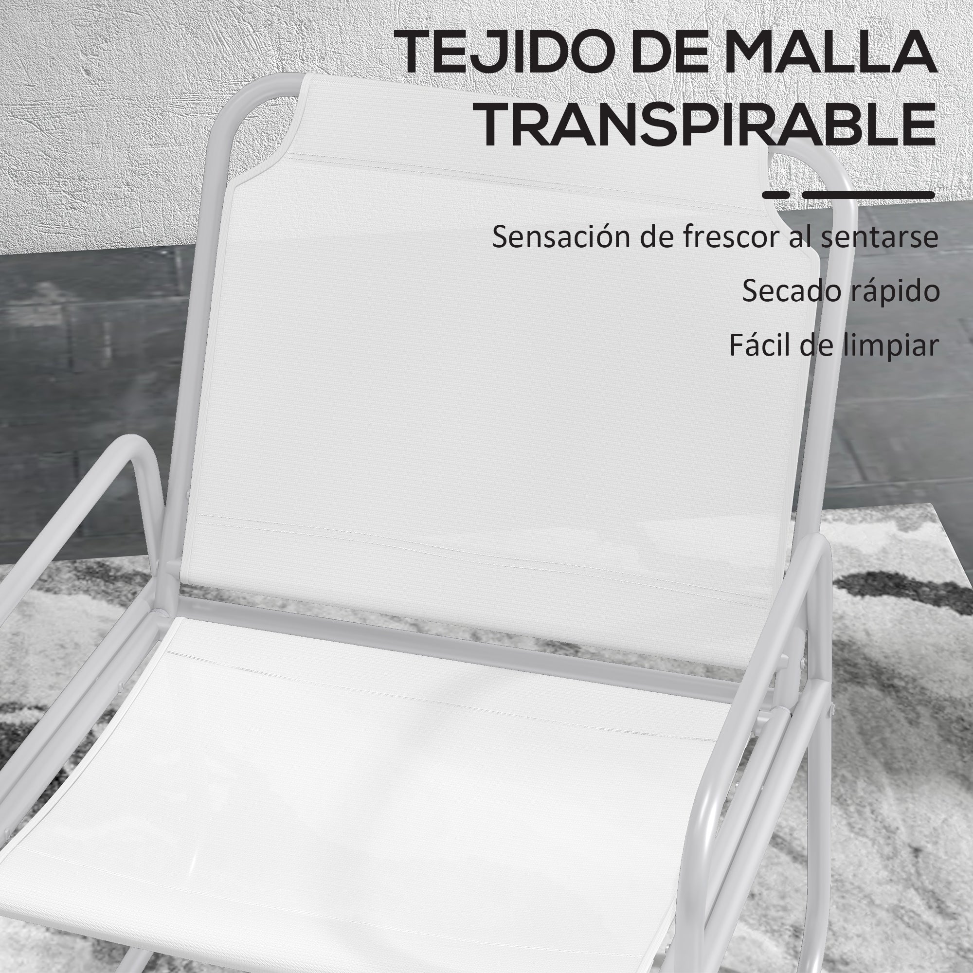 - Sitzfläche und Rückenlehne aus atmungsaktivem Textilene-Gewebe für zusätzlichen Komfort;