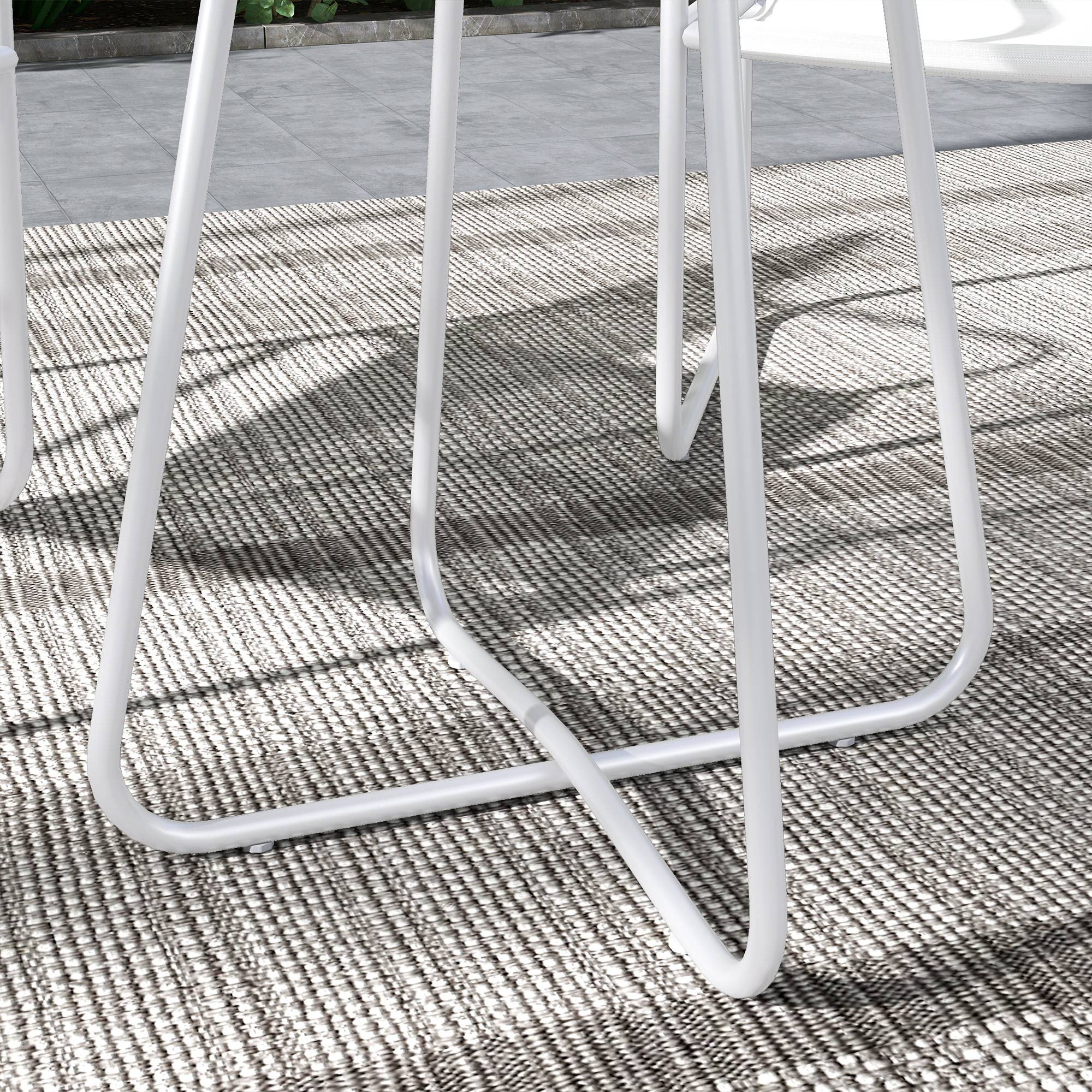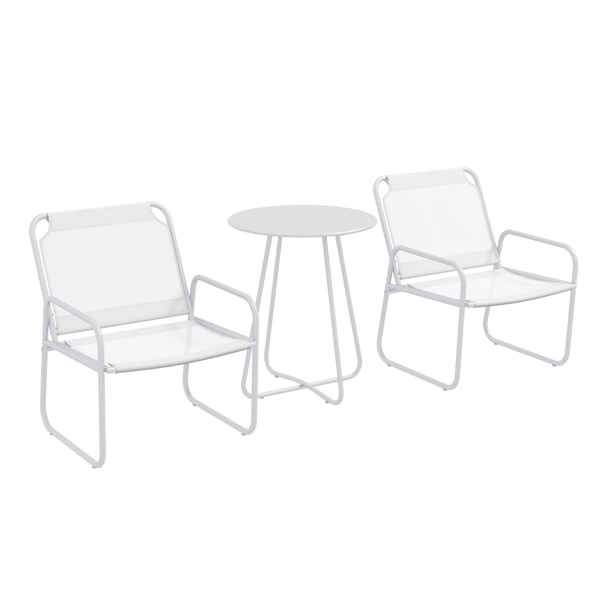 Outsunny Gartenmöbel Set – 1 runder Tisch und 2 Terrassenstühle mit Stahlrahmen, Armlehnen und verstellbaren Fußpolstern – Weiß