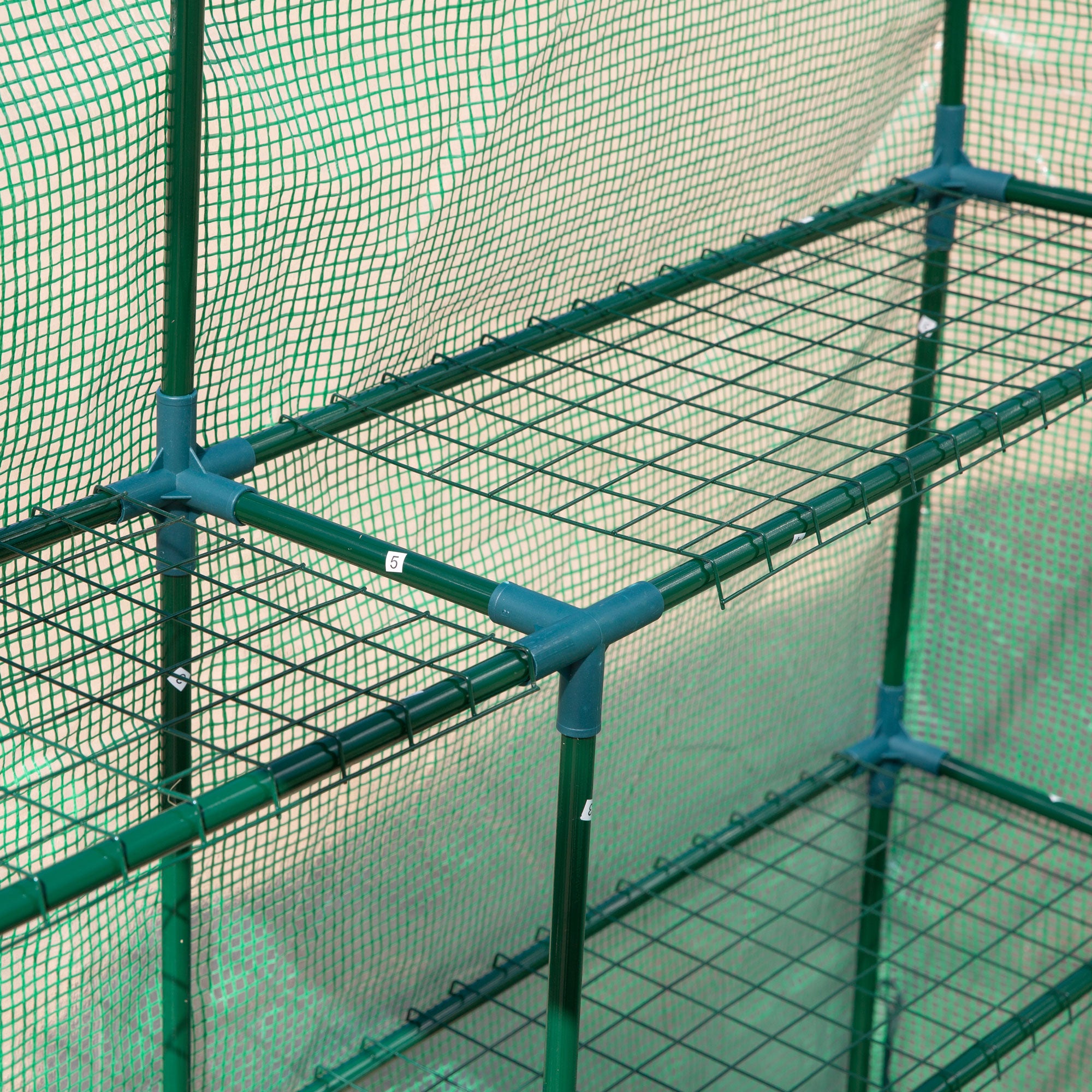 Outsunny Gewächshaus mit 8 Regalen - Tomaten-Gewächshaus mit Tür aus grünem Stahl und PE-Kunststoff 214 x 143 x 195 cm