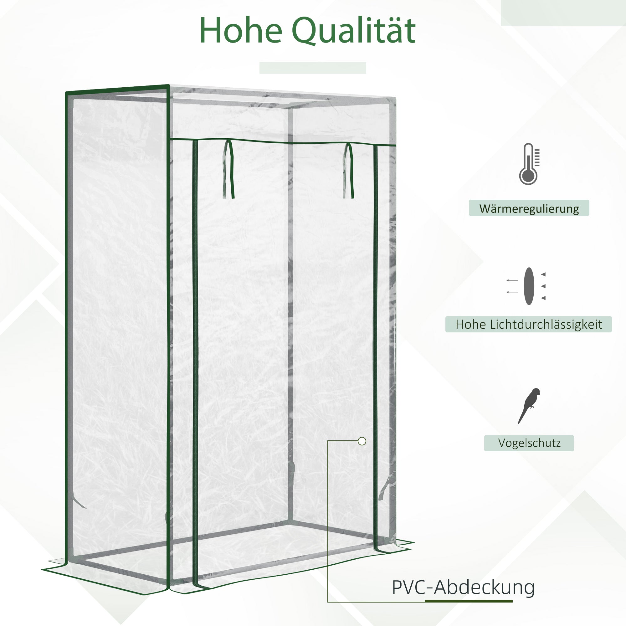 Outsunny Gewächshaus mit PE-Gitterfolie, Tür, Winterfestes Foliengewächshaus aus Stahl, Gewächshaus für Balkon, Garten, Tomatenhaus 100 x 50 x 150 cm, Transparentes Tomatengewächshaus für Tomaten und Gemüse