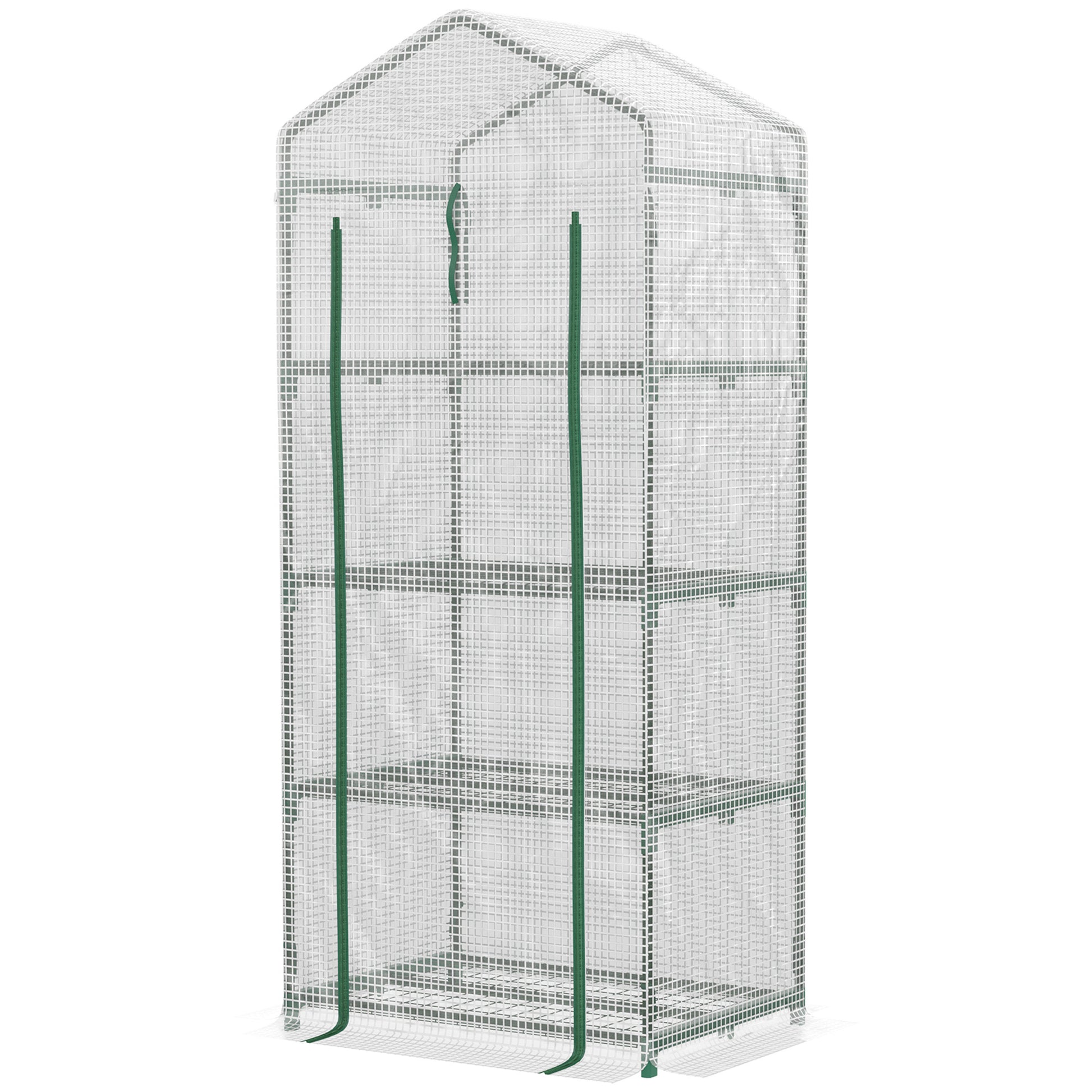 Outsunny Gewächshaus mit Regalen, winterfestes Foliengewächshaus aus Stahl, Gewächshaus für Balkon, Garten, Tomatengewächshaus 70x50x160cm, Gewächshaus für Gemüse, Blumen, Pflanzen, weiß