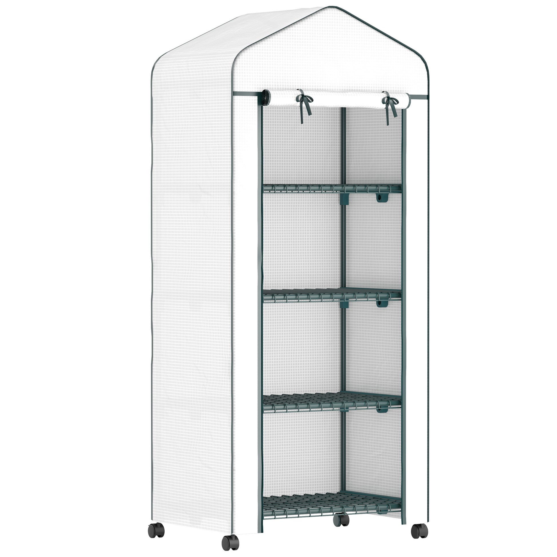 Outsunny Gewächshaus mit Rollen, Regalen, winterfestem Stahlfolien-Gewächshaus, Gewächshaus für Balkon, Garten, Tomatenhaus 69 x 50 x 165 cm, Tomaten-Gewächshaus für Tomaten, Blumen, Pflanzen Weiß