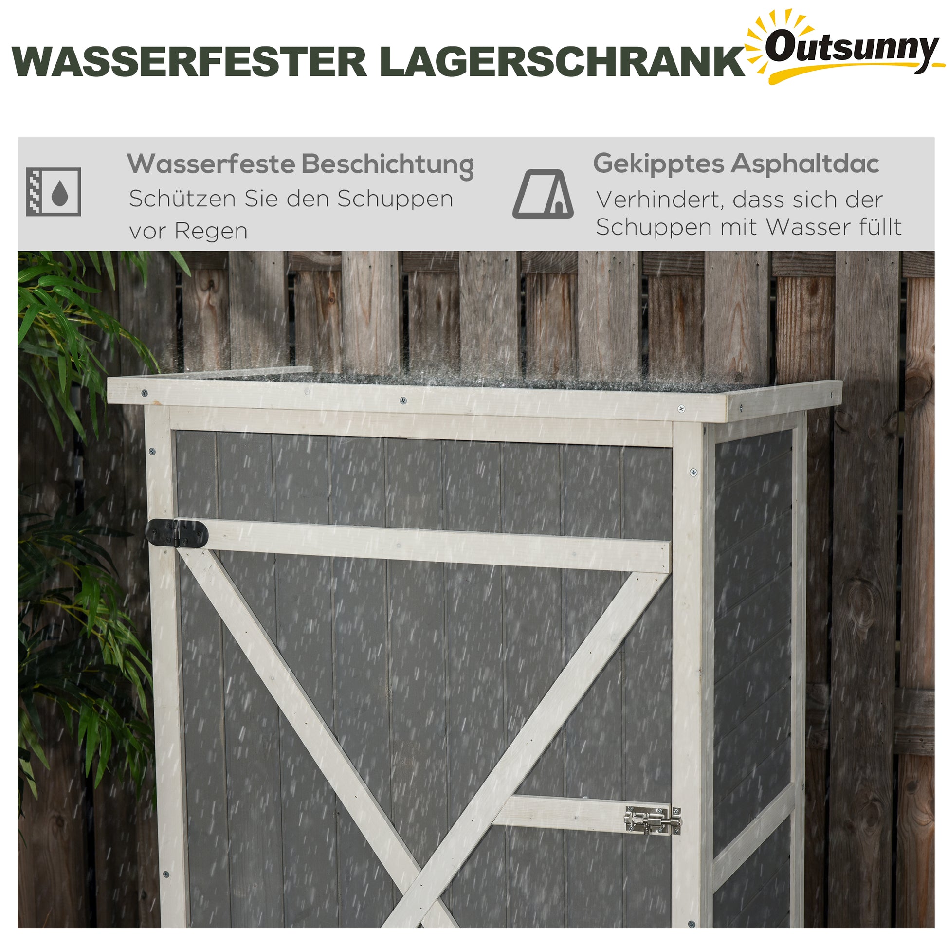 - - Wetterfeste Konstruktion: Das schräge, wasserdichte Asphalt-Dach sorgt dafür, dass der Inhalt Ihres kleinen Geräteschuppens trocken und geschützt bleibt. Aus Kiefernholz mit wasserdichter Farbe, um den Elementen standzuhalten