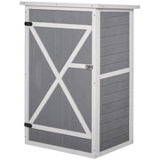 Outsunny Holz-Gartenkabine, wetterfester Geräteschuppen 75x56x115cm, Schuppen mit Tür, Regalen, Geräteschrank, Gartenhaus Geräteschuppen für Garten, Terrasse, Hinterhof, Rasen, Grau