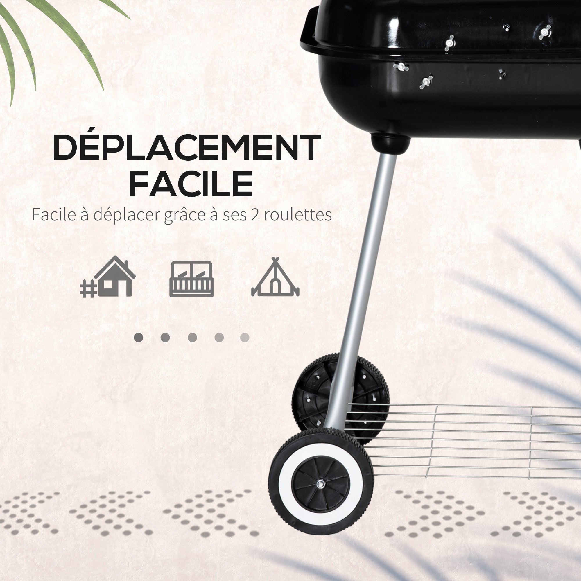 Outsunny Holzkohlegrill mit 2 Rädern, Zubehör, Abdeckung und Ablage, Maße 56L x 62B x 82H cm - schwarz emailliertes Metall