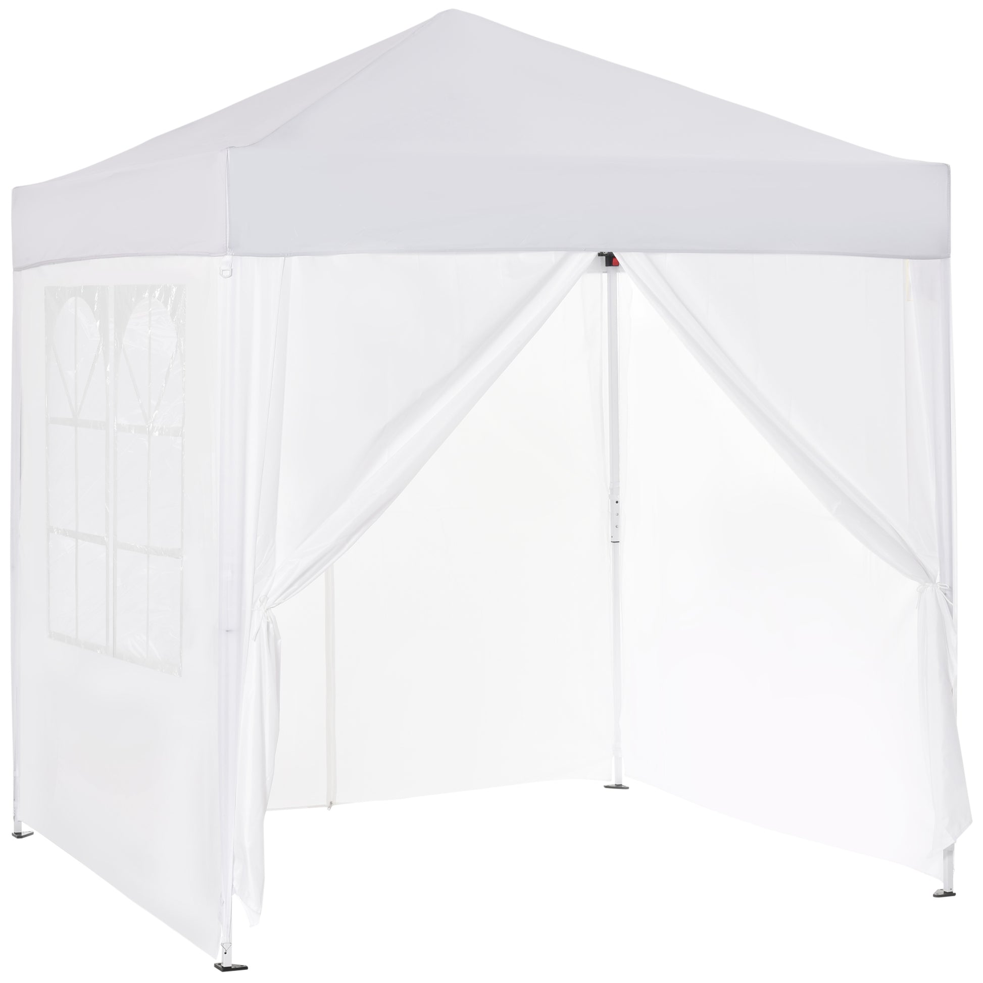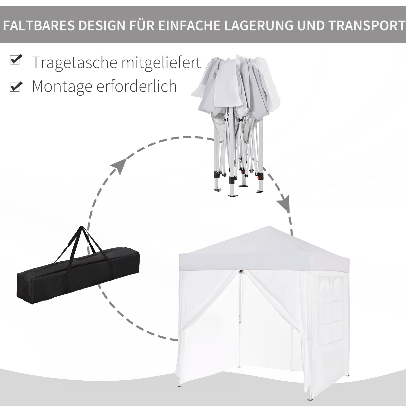 Outsunny Pavillon 2x2m wasserdicht, faltbarer Pavillon mit 4 Seitenwänden, Ablauflöchern und Fenster, Faltender Partytent UV 30+, Gartenpavillon mit Tragetasche für Terrasse, Weiß
