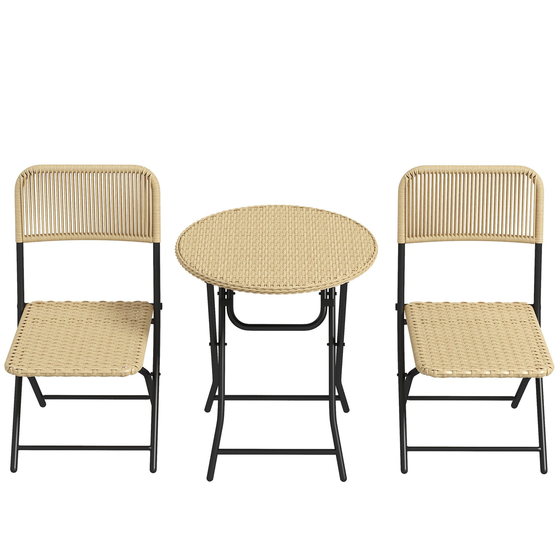 Outsunny Rattan Gartenmöbel Set 3-teilig, Balkonmöbel Set mit Couchtisch, 2 Stühlen, Klapp-Bistro-Set mit UV-Schutz, Sitzgruppe für Balkon und Terrasse, Stahl, Gelb