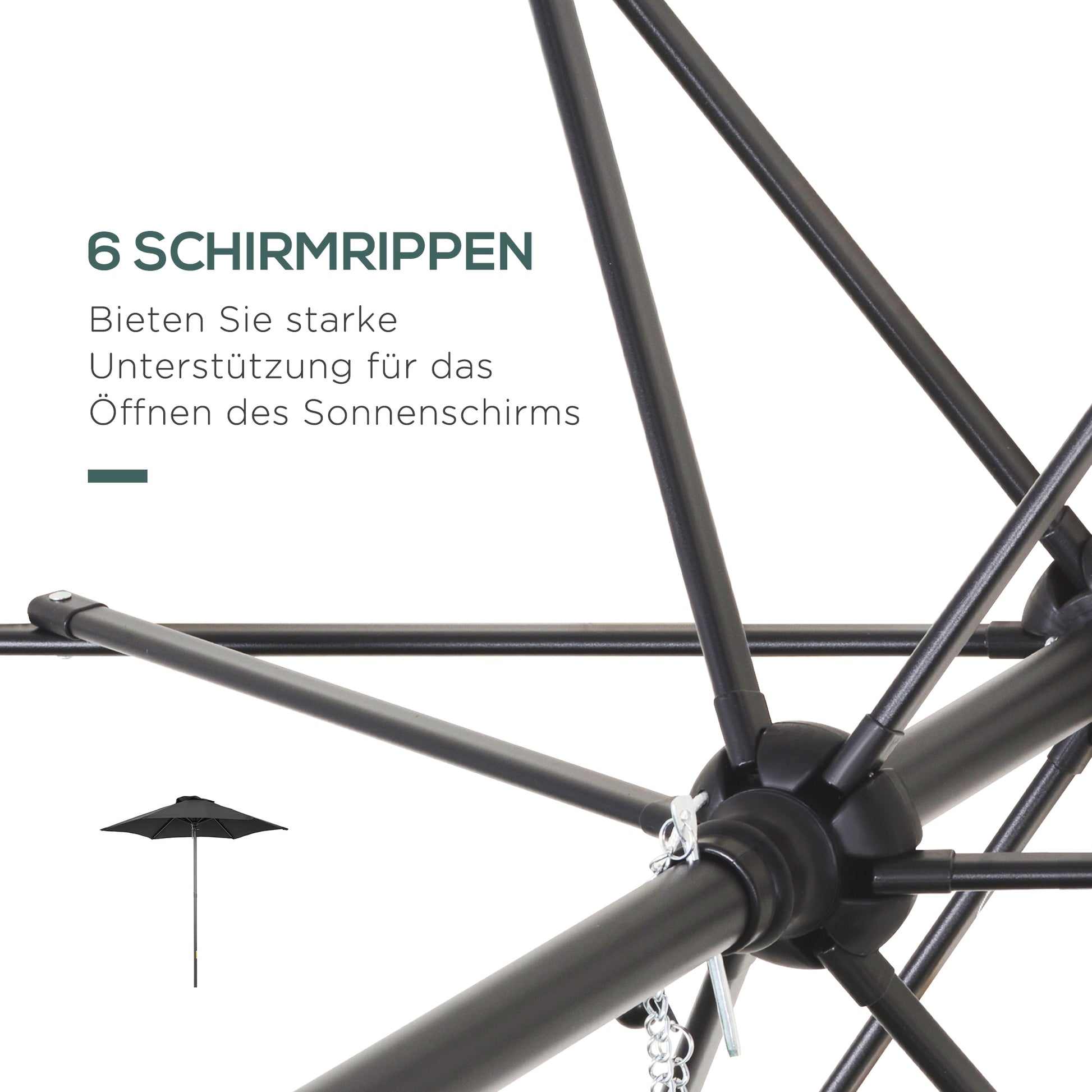 Outsunny Sonnenschirm Ø196 cm, sechseckiger Balkon-Sonnenschirm, windfester Marktschirm, Kurbel-Sonnenschirm, Sonnenschutz für Strand, Balkon, Garten, Schwarz