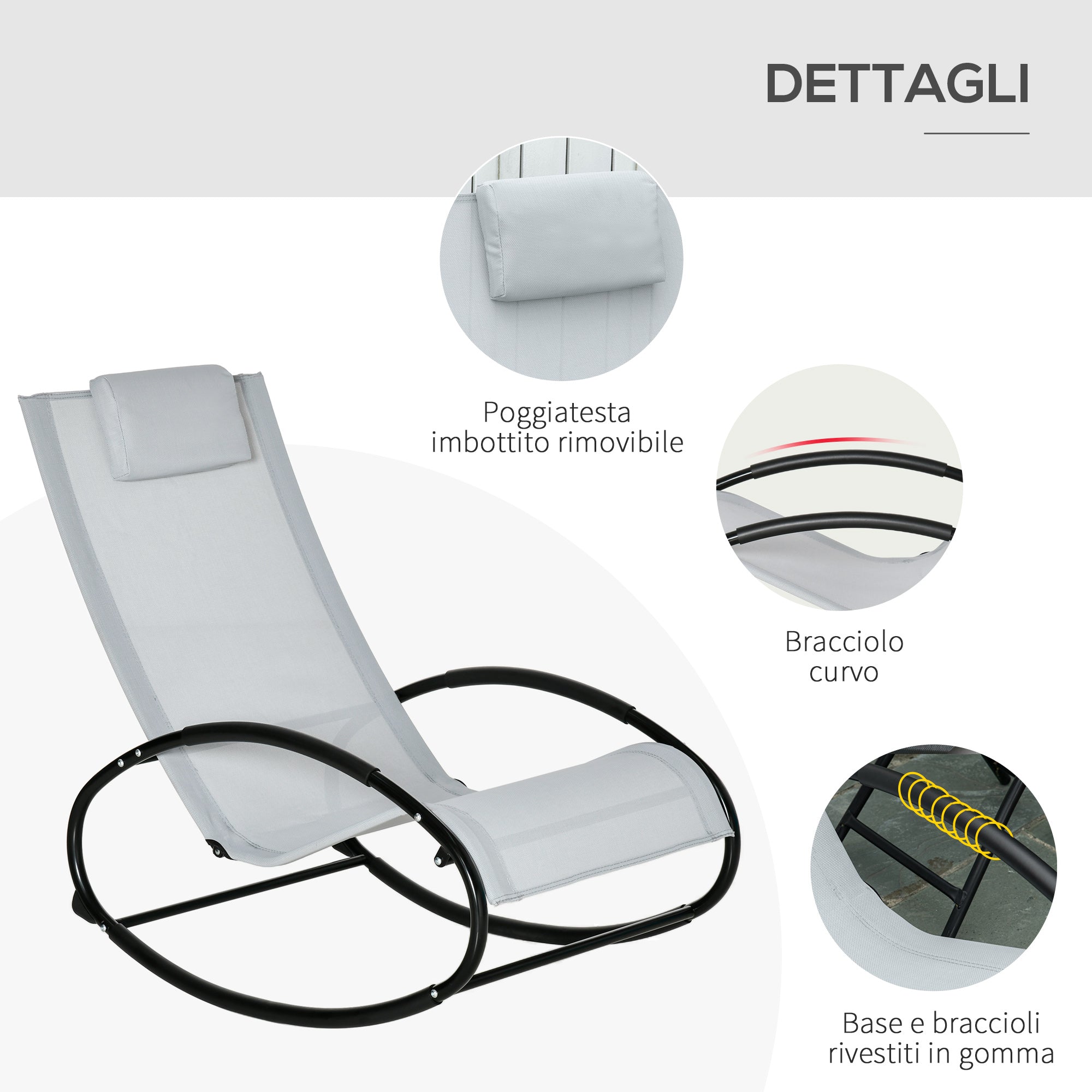 Outsunny Zero Gravity Garten Schaukelsessel, ergonomischer Gartenliegestuhl mit atmungsaktivem Stoff und Kissen für den Innen- und Außenbereich, 105x62x88 cm, Grau
