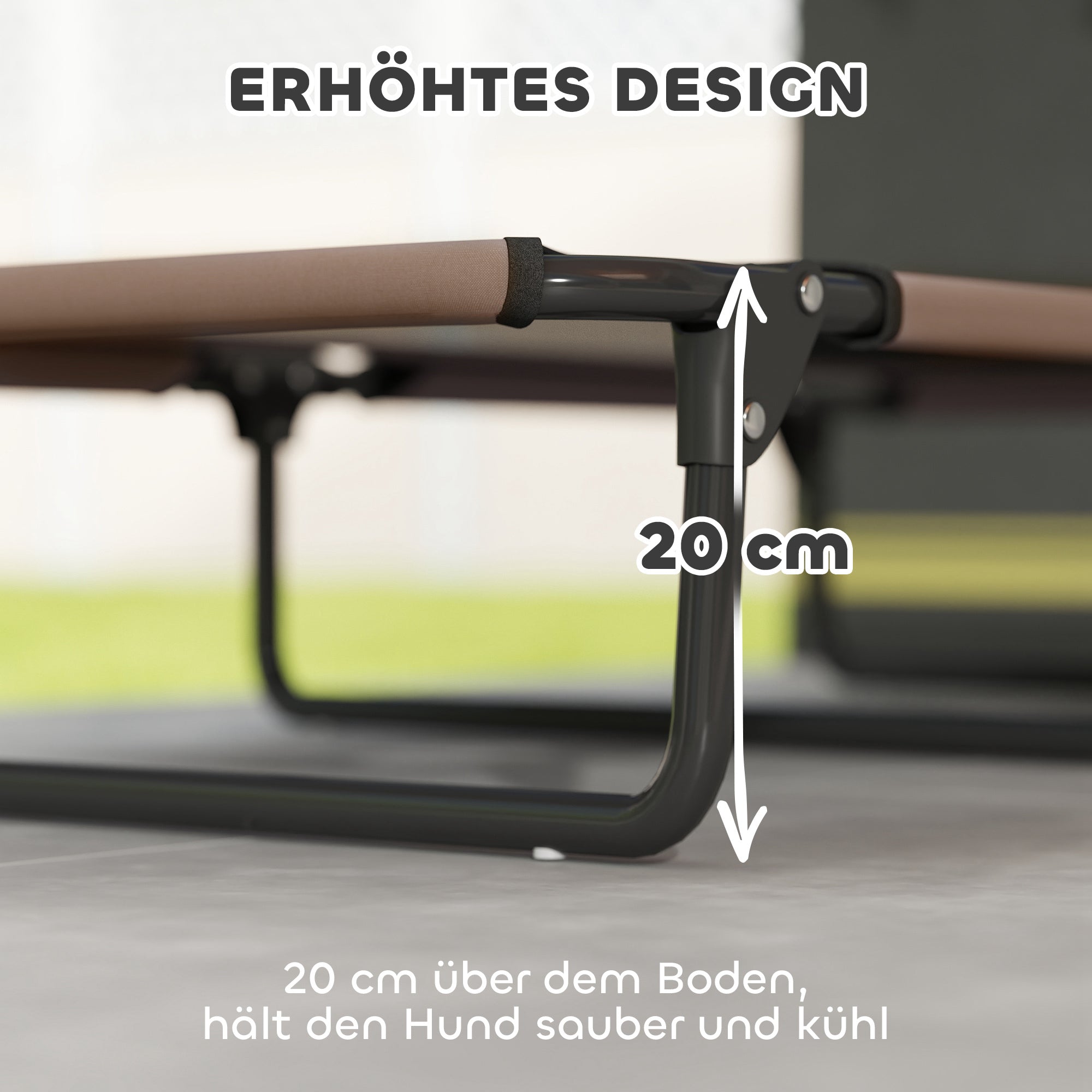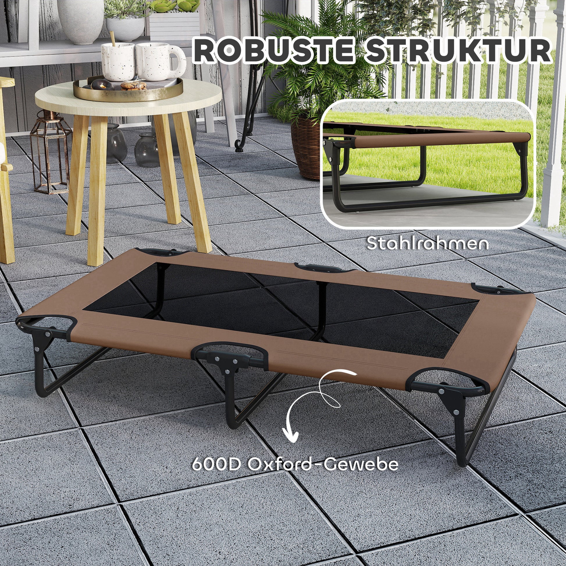 PawHut Erhöhtes Klapp-Bett für Hunde, Outdoorlounger mit Netzdesign, atmungsaktiv, für große Hunde Kaffee Oxford 107 x 61 x 20 cm