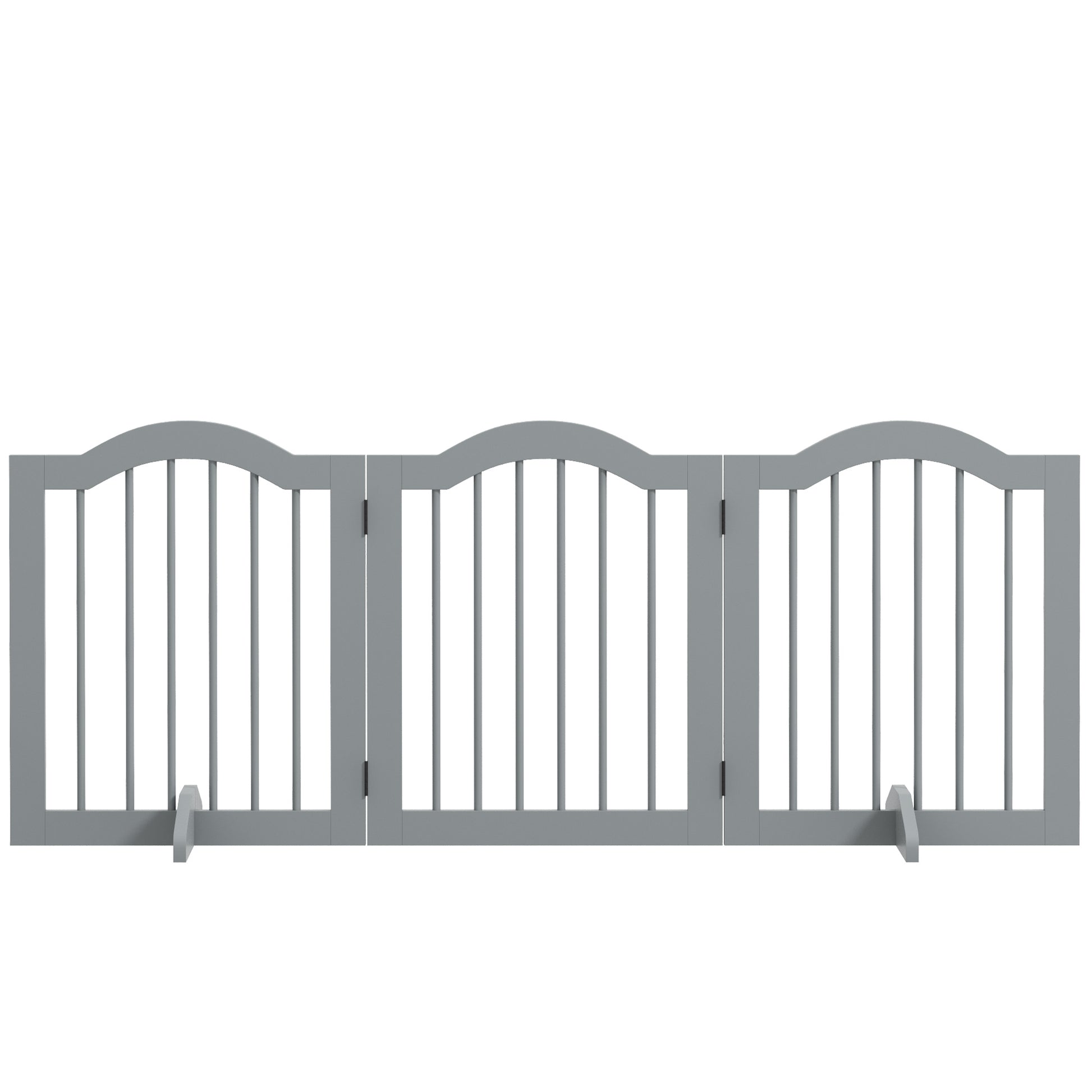 PawHut Hundebarriere 3-Panel, 154,5 x 61 cm Faltbare Hundetür mit Tür, Türbarriere mit 2 Stützfüßen, Freistehendes Treppengitter für Küche, Flur, Hellgrau