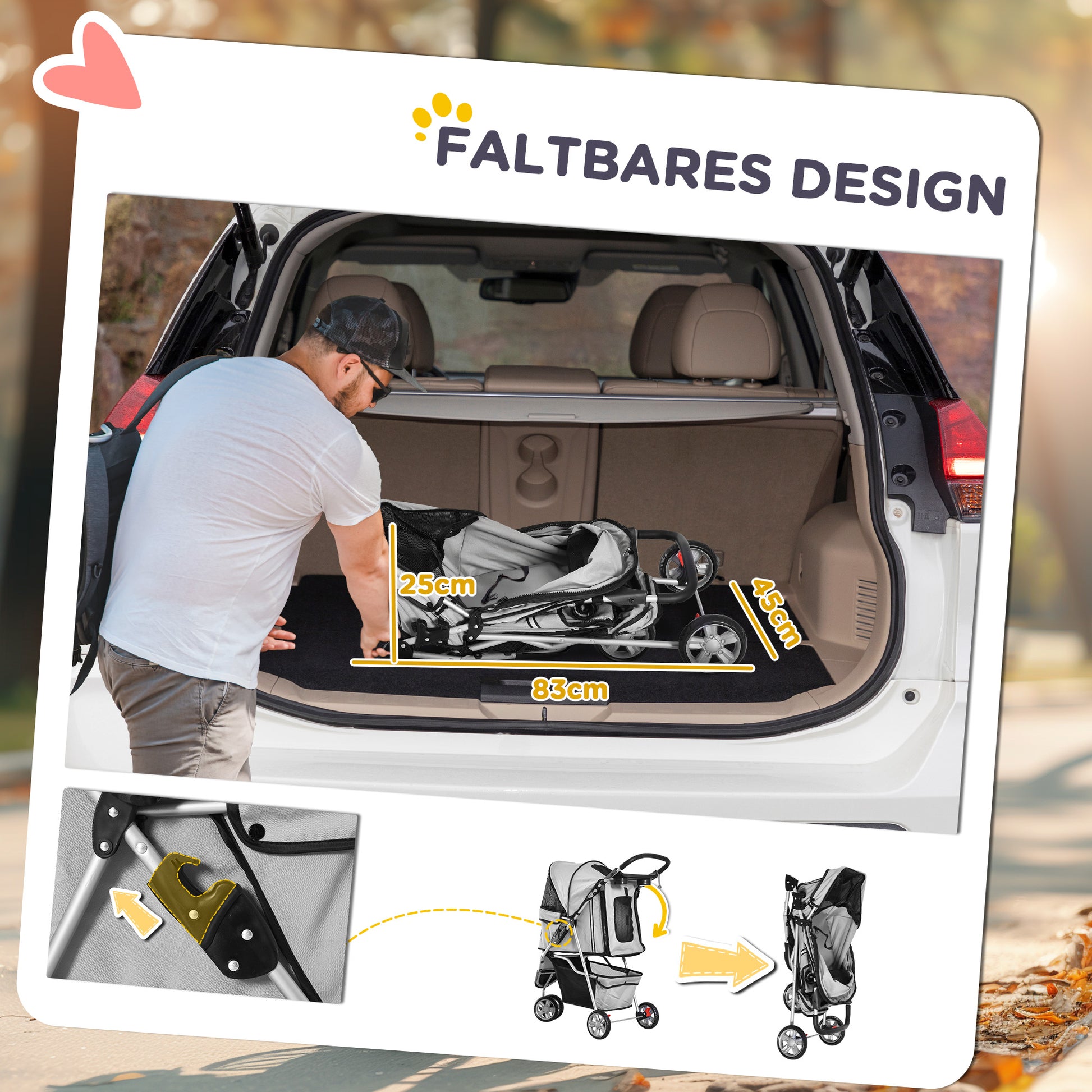 PawHut Hundebuggy Faltbarer Haustierwagen für Hunde & Katzen mit Kissen, Netzfenstern, Trinkbecherhalter und Stauraum - Grau