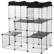 PawHut Kleintierkäfig mit 40 Panels, anpassbare Form, Haustier-Spielbereich, Metallzaun für Meerschweinchen, Kaninchen und Kätzchen 105x70x116 cm Schwarz