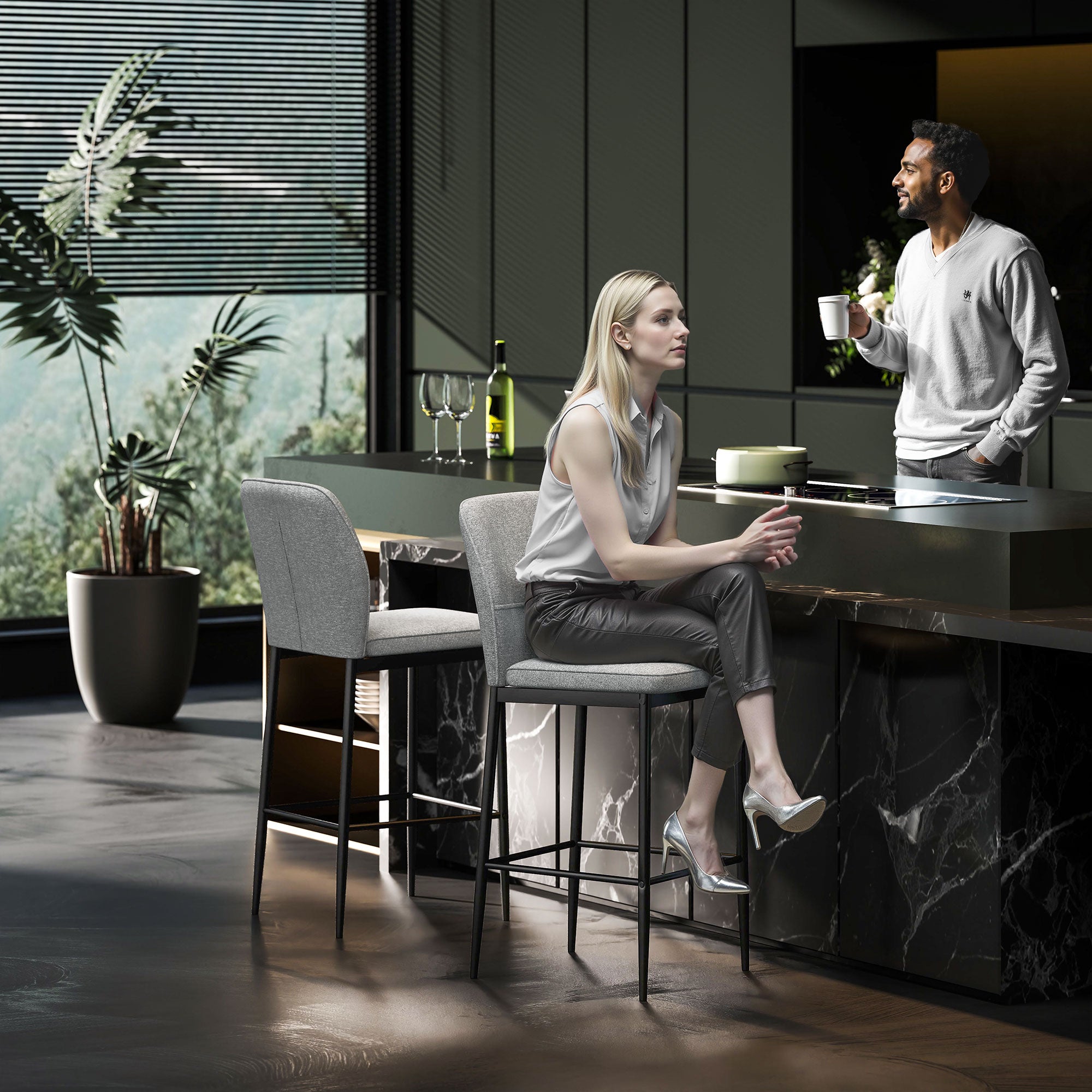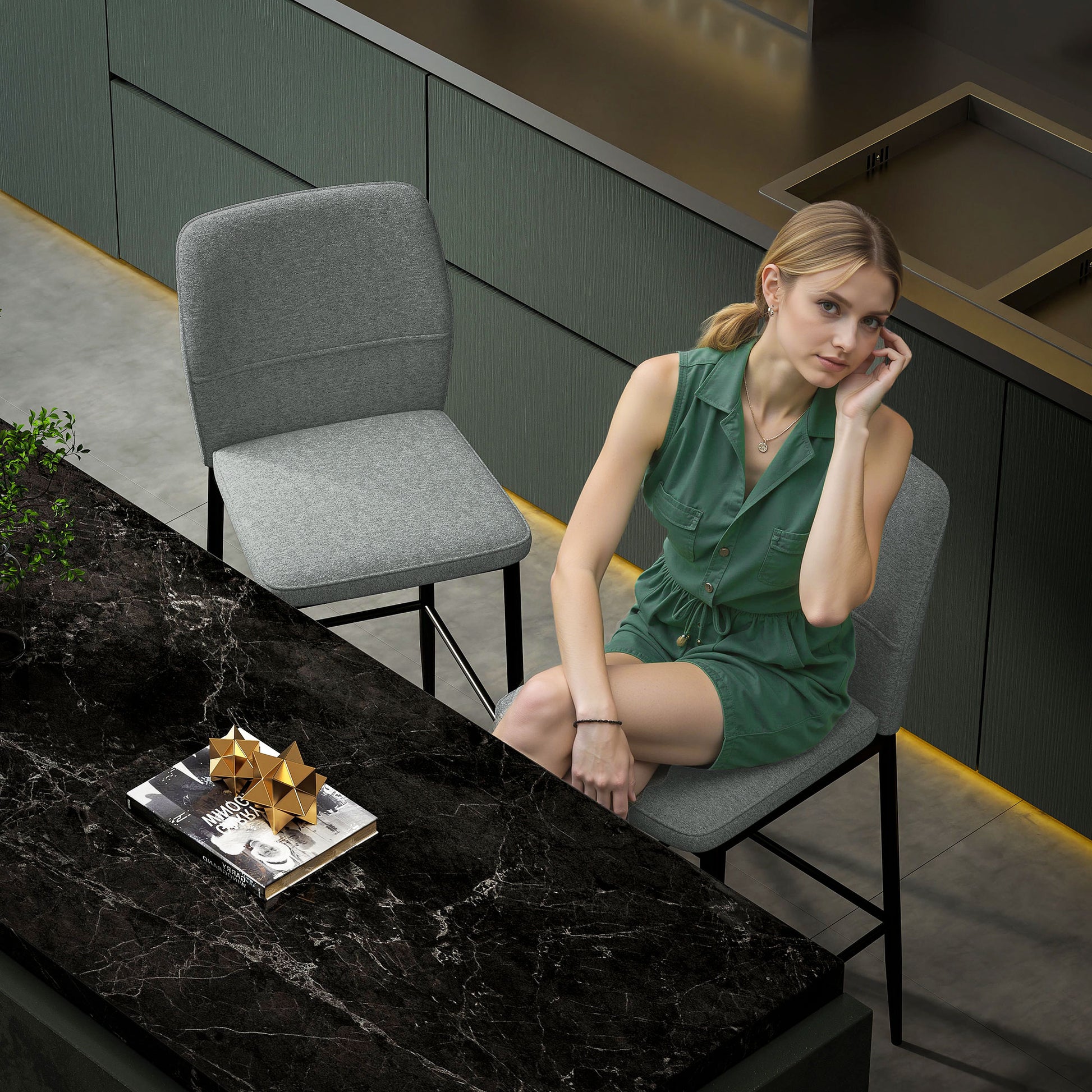 - - ELEGANTES DESIGN: Dieses Set von Küchenhockern kombiniert eine schwarze Stahlkonstruktion mit synthetischem Samt in einem schönen Grauton und fügt einen eleganten Touch hinzu, der sich mühelos in Ihre Einrichtung einfügt.